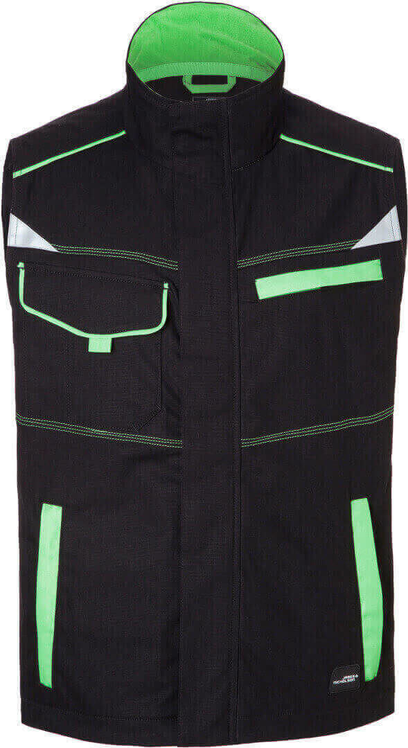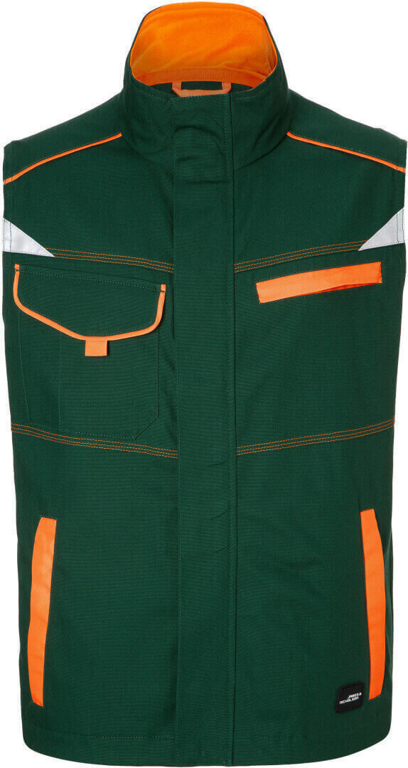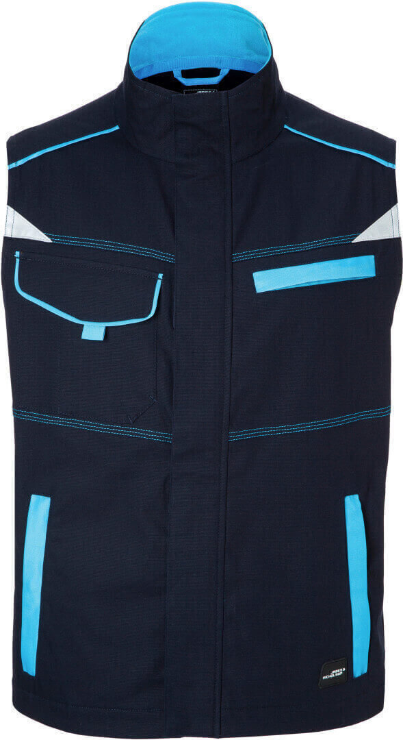 ľahké elastické plátno, pohodlné nosenie vďaka elastanu a ergonomickému strihu, stojačik s jemnýn fleecom vnútri, po celej dĺžke skrytý zips s ochranou brady a chlopňou proti vetru, ergonomicky strihané rukávy, bočné vrecká na zips, náprsné vrecko, vnútorné vrecko, náprsné vrecko na suchý zips, vrecko na mobil vo vnútri, reflexné prvky na rukávoch a na zadnej strane, skryté zipsy a gombíky, možno prať na 60 ° a sušiť v sušičke