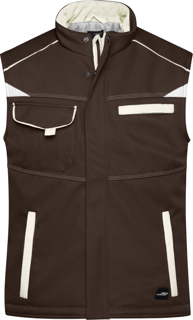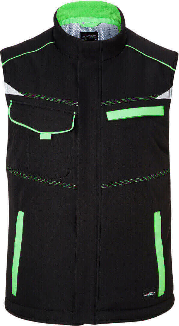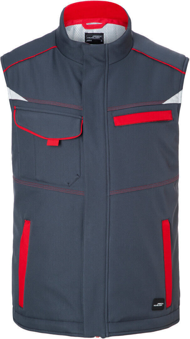 vetru a vode odolná (2.000mm vodného stĺpca), priedušná a priepustná pre vodné pary (2.000g / m² za 24h), odolný a robustný softshell, stojačik s jemnýn fleecom vnútri, po celej dĺžke skrytý zips s ochranou brady a chlopňou proti vetru, predĺžený chrbát, bočné vrecká na zips, náprsné vrecko, vnútorné vrecko, vrecko na mobil vo vnútri, reflexné prvky na prednej i zadnej strane, zips pre ľahkú potlač a výšivku, skryté zipsy a gombíky