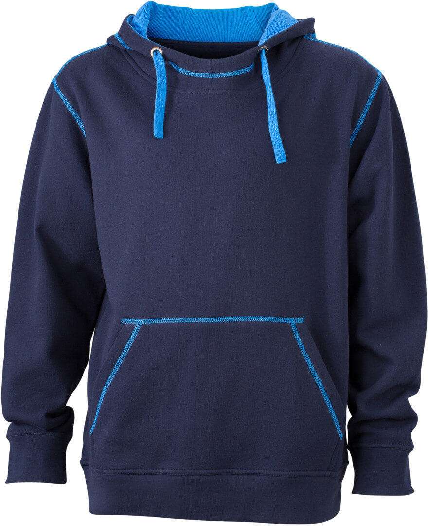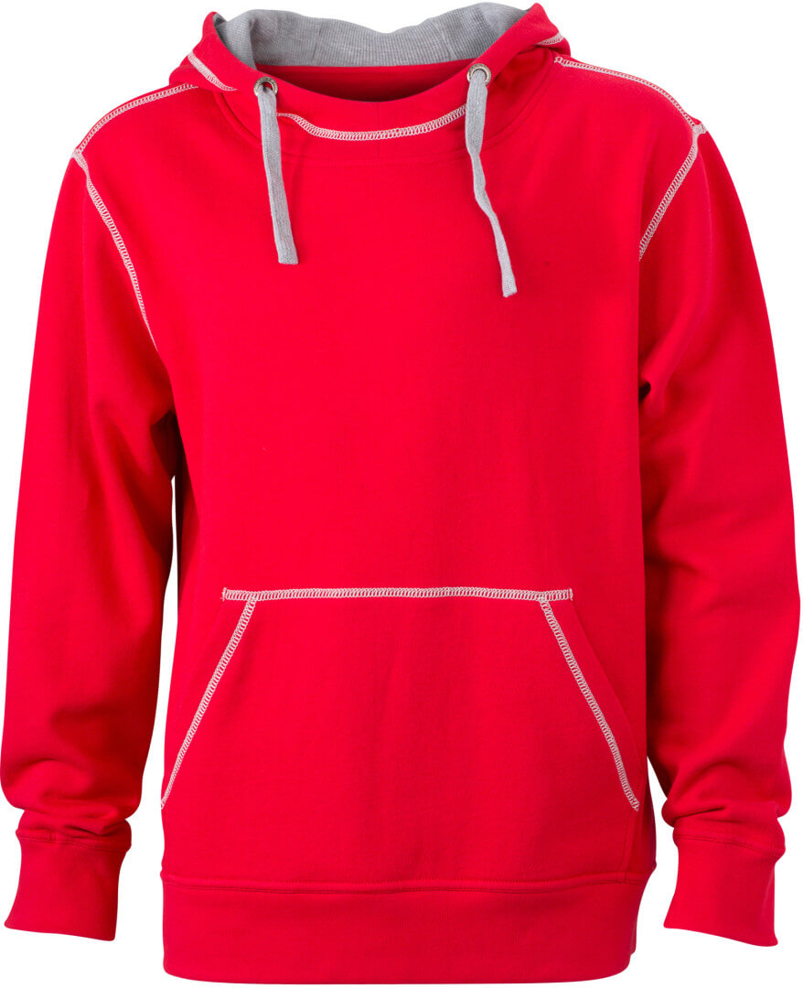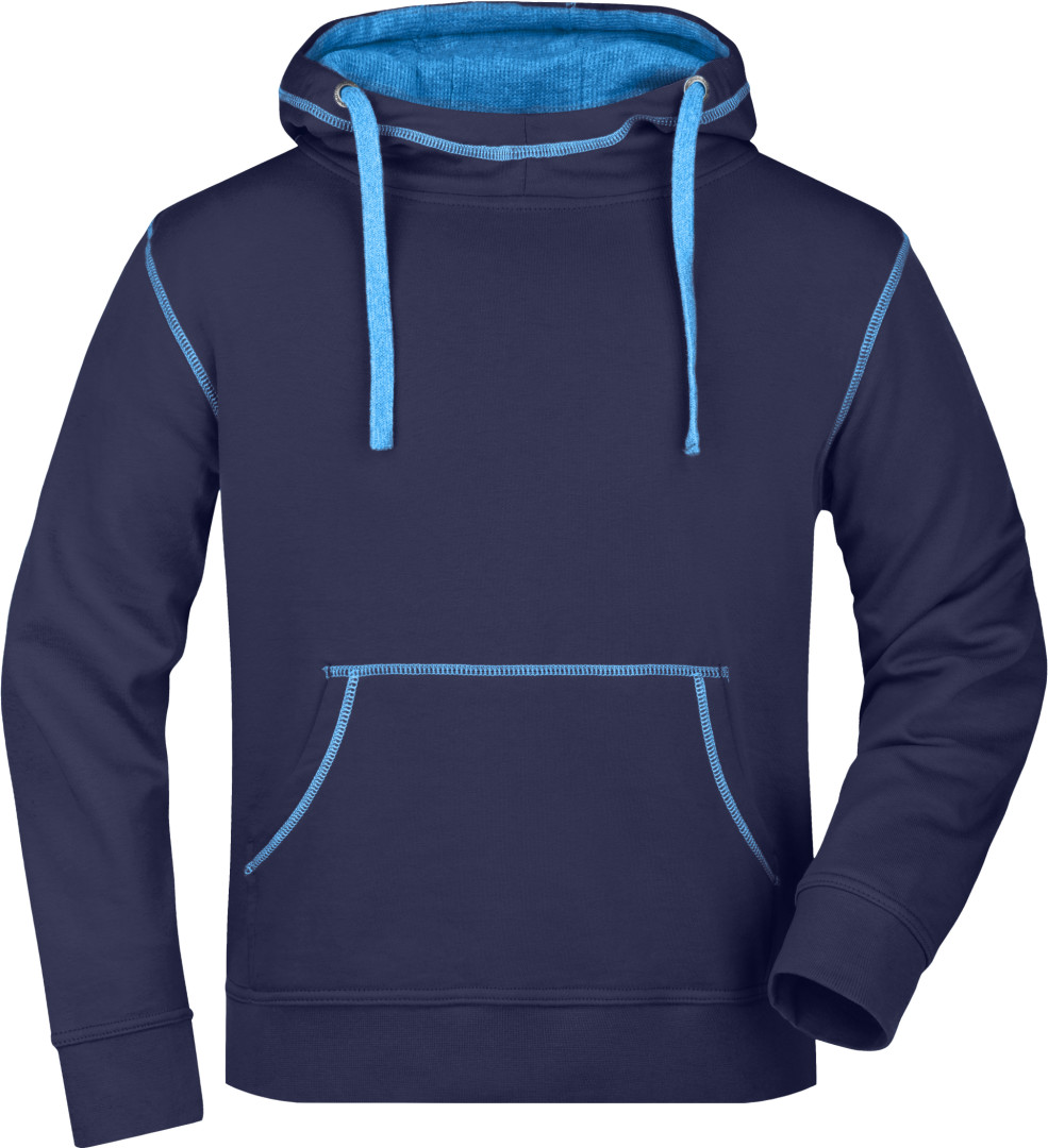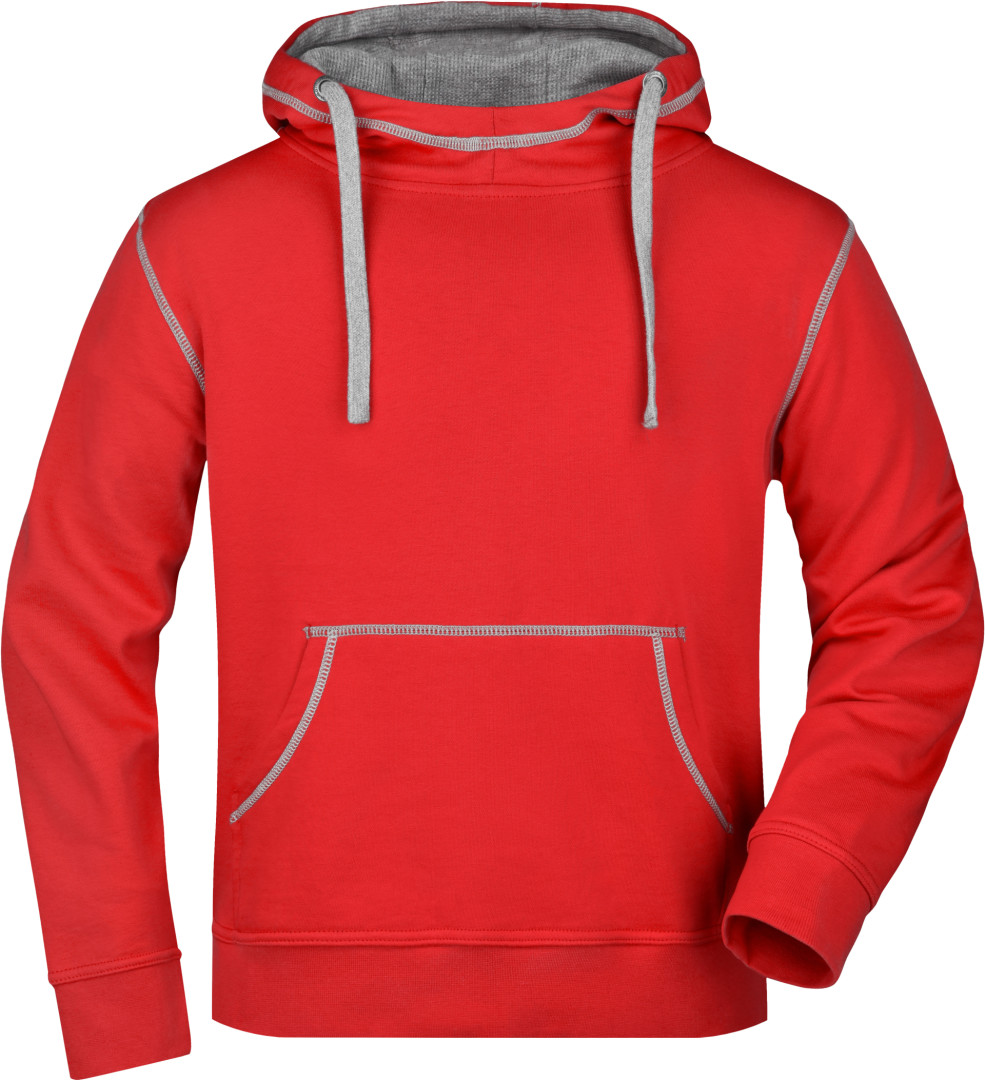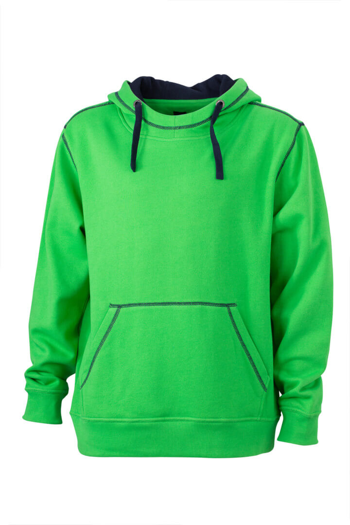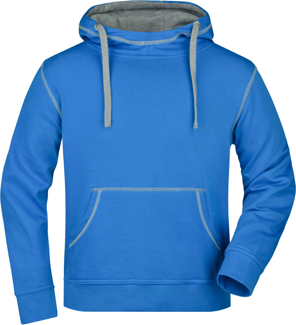 280g / m², 80% bavlna, 20% polyester dvojitá kapucňa so sťahovacou šnúrkou v kontrastnej farbe, kontrastné prešitie i vnútro kapucne, mäkký materiál, vnútri počesaný, manžety s elastanom, ploché švy, klokanie...