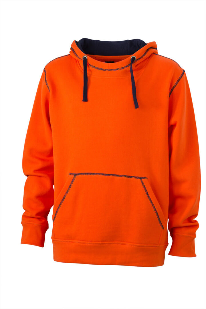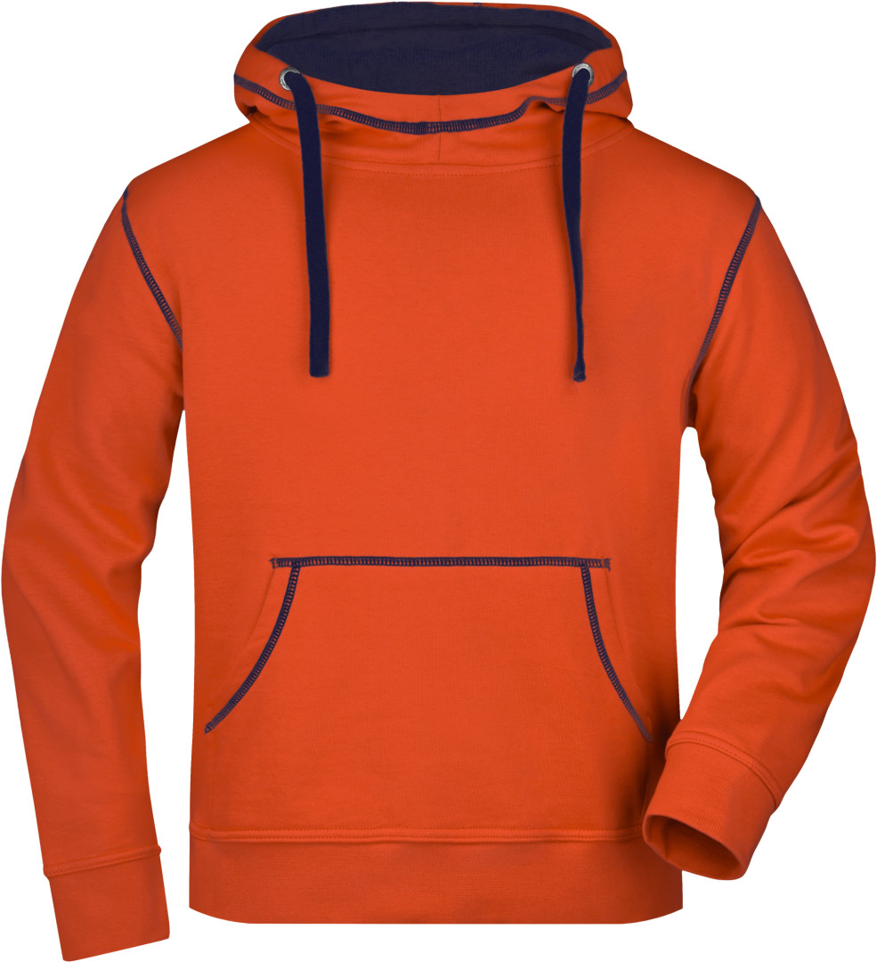 280g / m², 80% bavlna, 20% polyester dvojitá kapucňa so sťahovacou šnúrkou v kontrastnej farbe, kontrastné prešitie i vnútro kapucne, mäkký materiál, vnútri počesaný, manžety s elastanom, ploché švy, klokanie vrecko