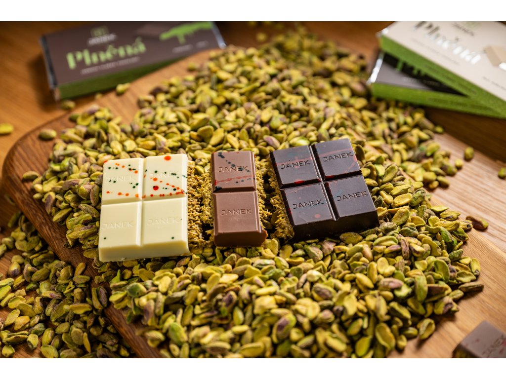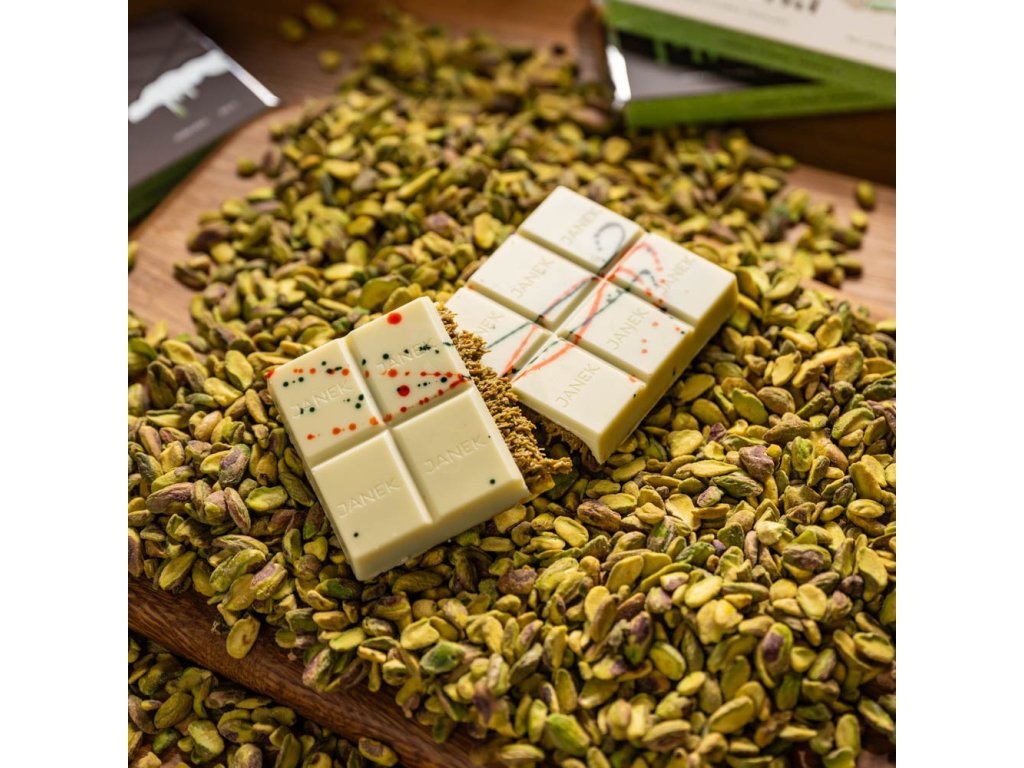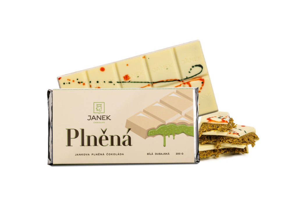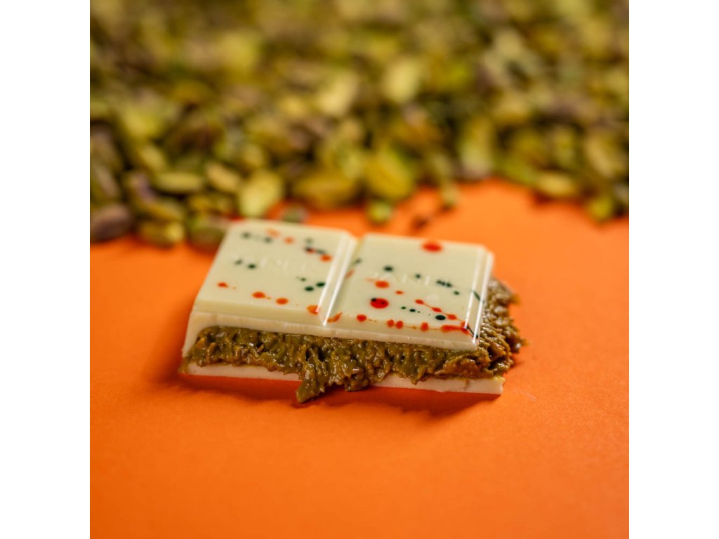 Exkluzívna biela čokoláda s jemnou náplňou z pistáciového krému, chrumkavým kadayifom a trochou tahini. Luxusná dubajská kombinácia, ktorá spája sviežu sladkosť s jedinečnou chrumkavosťou. Čokoláda inšpirovaná Orientom, ktorá poteší každého milovníka netradičných chutí. Obsahuje lepok. Zloženie: biela čokoláda (kakaové maslo 31,1 %, sušené plnotučné mlieko, cukor, sójový lecitín, prírodná vanilka), pistáciová pasta, knafeh (pšeničná múka, pšeničný škrob, soľ, sójový lecitín, slnečnicový olej, sorban draselný, voda), prepustené maslo, tahini, prírodné farbivá (E141, E100, E163). Váha: 200 g