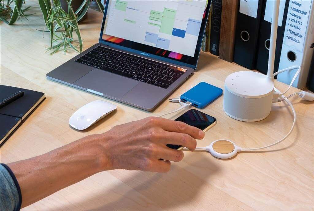 Unikátny bambusový dizajn nabíjacieho kábla 3 v 1 s integrovanou bezdrôtovou nabíjačkou 5W. Kábel s dĺžkou 1m je vyrobený z TPE bez použitia PVC. S konektorom USB C a obojstranným konekorom pre zariadenia s iOS a micro USB. Vstup: 5V / 2A, 9V / 2A. Výstup kábel: 5V / 1A; bezdrôtový výstup: 5V / 1A, 9V / 1,1A.