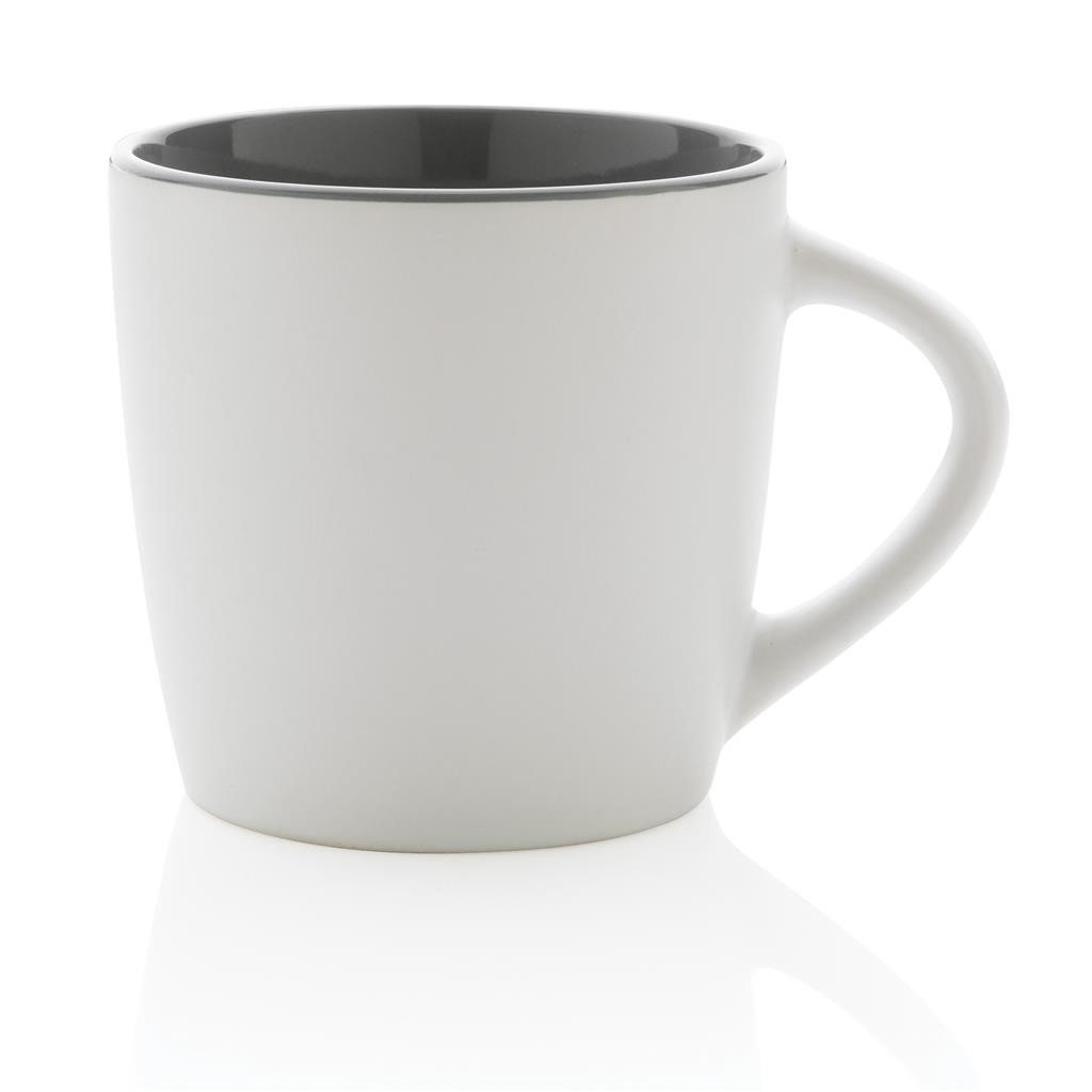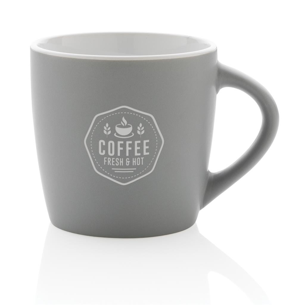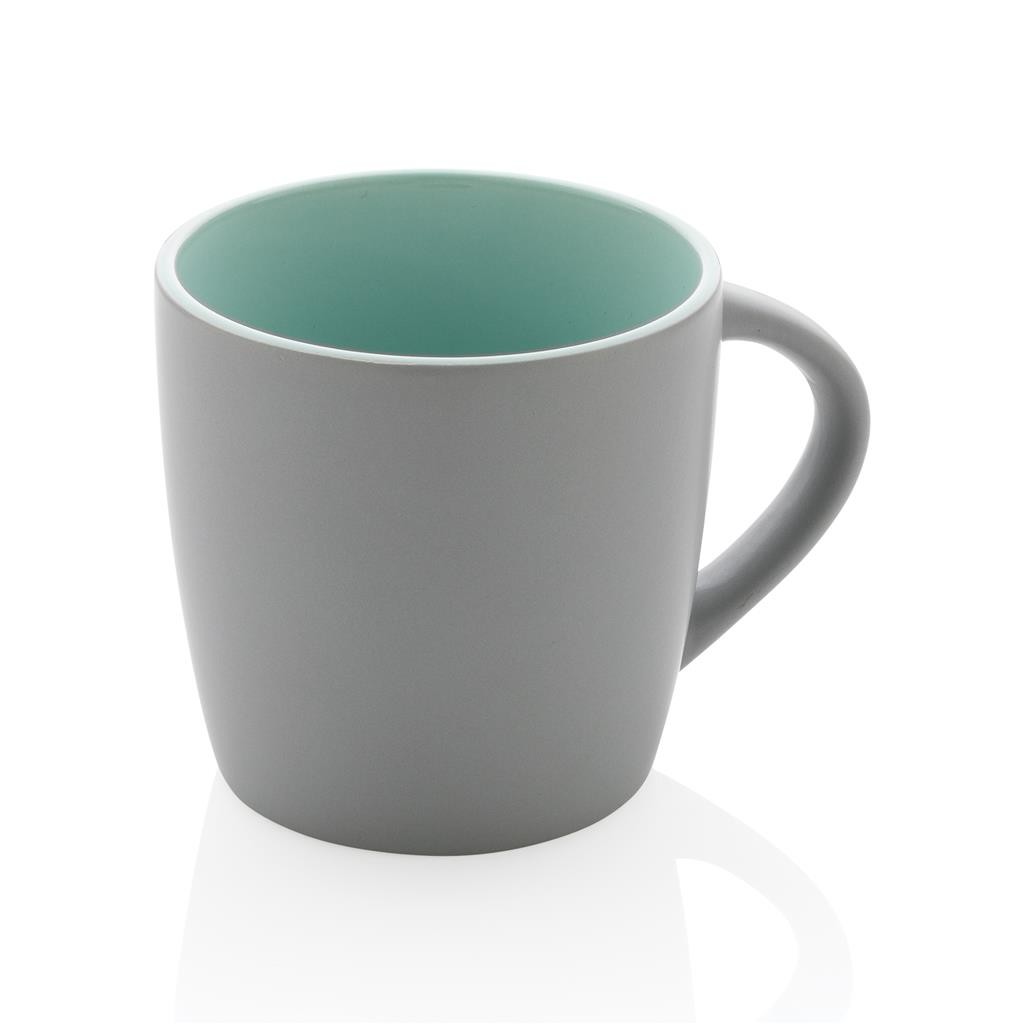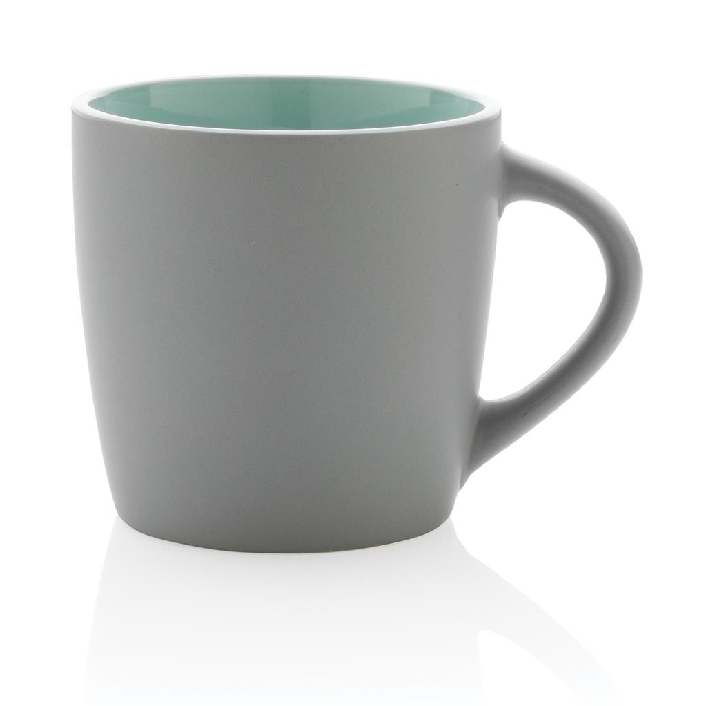 Svieži keramický hrnček s matnou vonkajšou a farebnou vnútornou časťou. Vhodné do umývačky riadu s odolnosťou až 125 umývacích cyklov pre akúkoľvek dekoračnú techniku (v súlade s EN12875-1). Balené v darčekovej krabičke. Objem: 300ml.