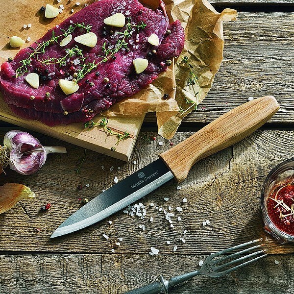 Nenahraditeľným pomocníkom do každej kuchyne je luxusný keramický nôž s drevenou rukoväťou. Keramická čepeľ pri krájaní neničí zdraviu prospešné vitamíny ani enzýmy v potravinách, nezanecháva pach ani pachuť ocele. Balené v darčekovej krabičke Vanilla Season. Rozmery: rukoväť 12 cm, čepeľ 13,1 × 2,5 × 0,18 cm, balenie 29,5 × 8 × 2,5 cm.