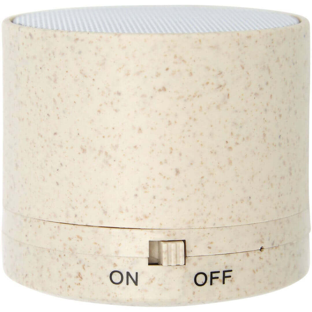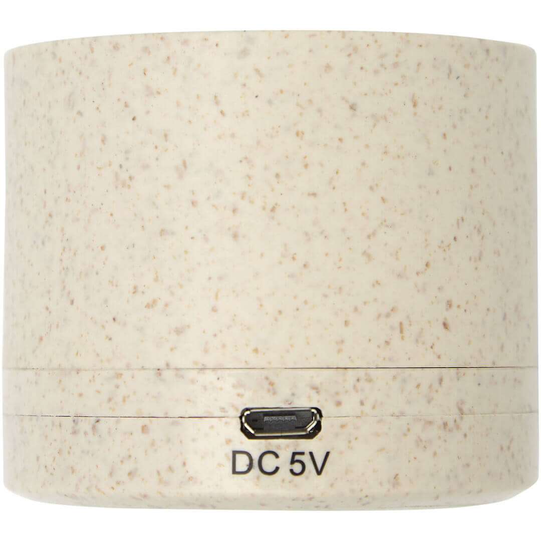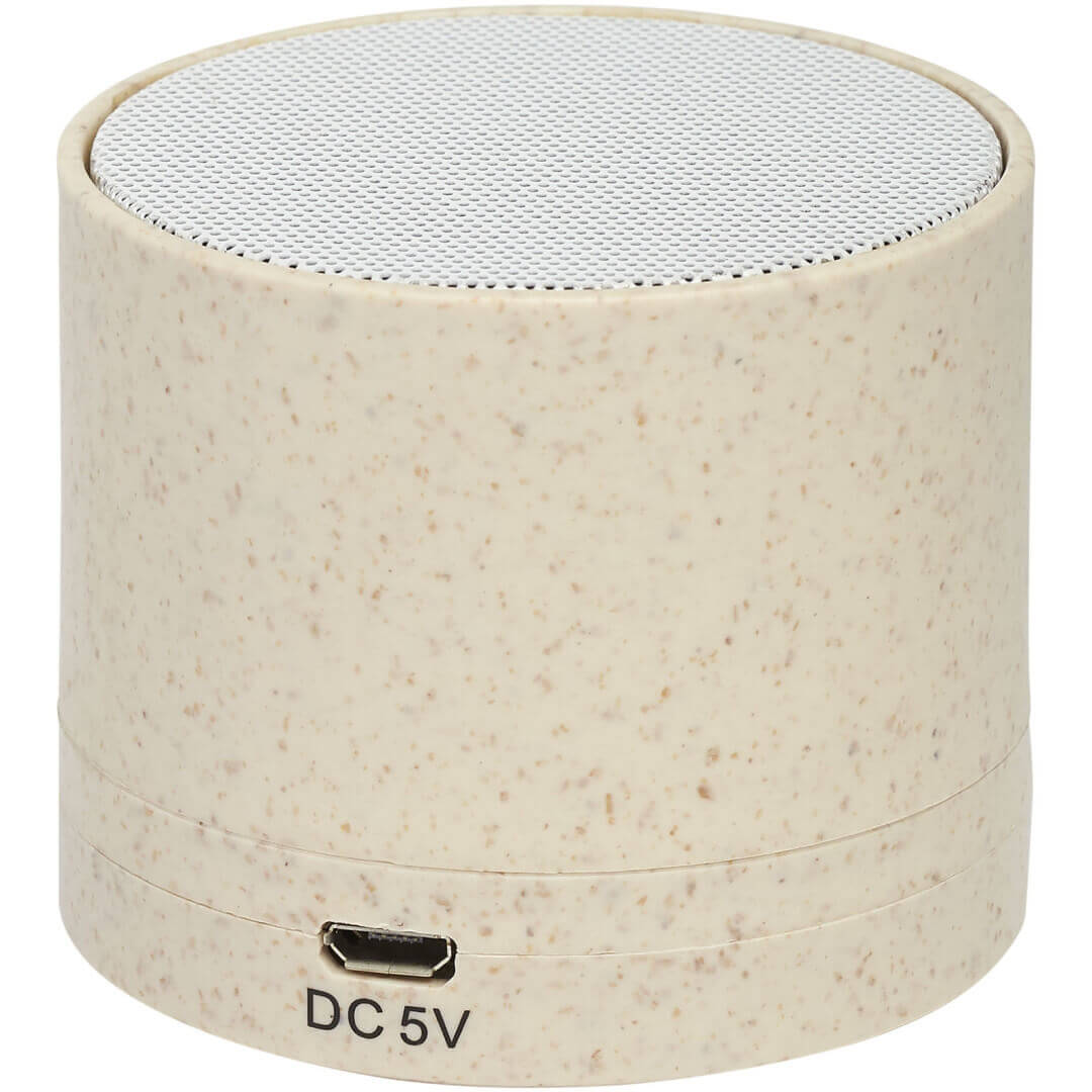 Puzdro na Bluetooth® reproduktor vyrobený z pšeničnej slamy a plastového materiálu zmiešaného dohromady, čo znižuje množstvo potrebného plastu. Reproduktor produkuje krištáľovo čistý zvuk s dobou prehrávania dlhšou ako 1,5 hodiny pri maximálnej hlasitosti s 3W výkonom. Bluetooth® 5.0. Balené v darčekovej krabičke a dodávané s návodom na použitie (oba sú vyrobené z udržateľného materiálu). Nabíjací kábel Micro USB je súčasťou balenia.