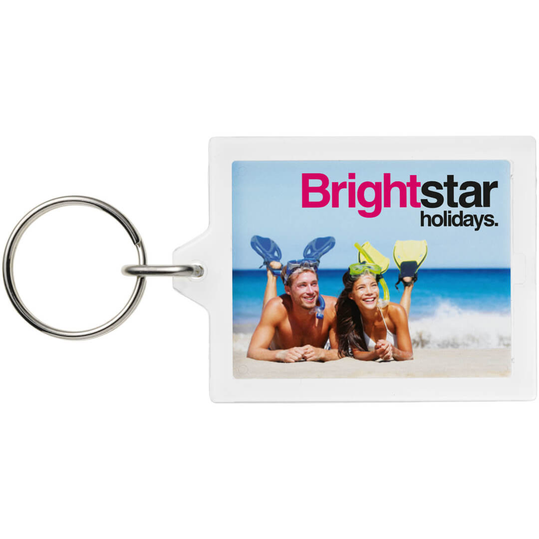 Kľúčenka Kailee E1. Číra obdĺžniková kľúčenka E1 s kovovým krúžkom. Kovový krúžok má plochý profil, ktorý je ideálny pre korešpondenciu. Rozmery potlačené vložky: 4,5 cm x 3,5 cm. Plast GPPS.