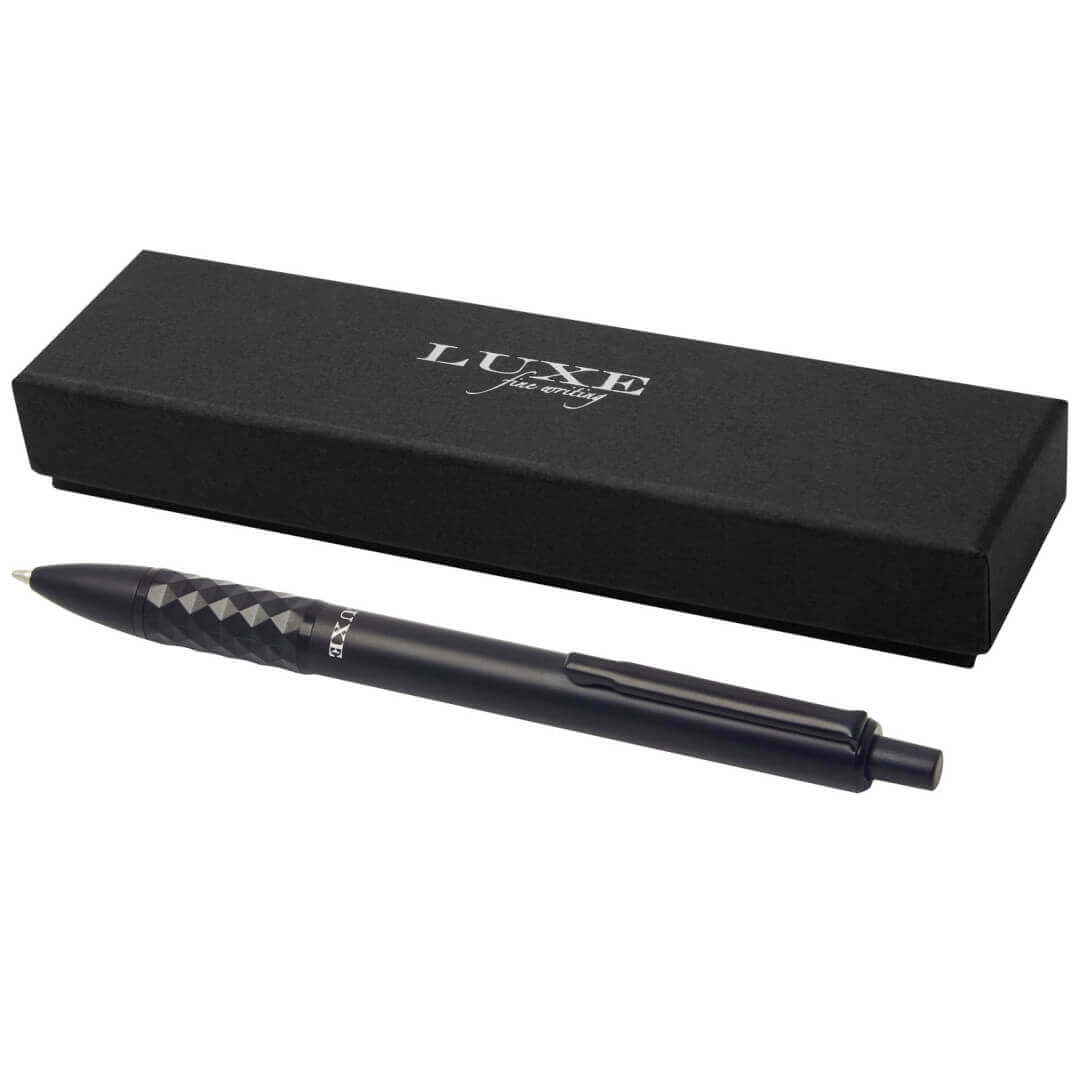 Elegantný vzhľad a pevné prevedenie sa spájajú v tomto exkluzívnom dizajne guľôčkového pera. Telo ponúka na dotyk príjemný dotyk. Dodáva sa s modrou atramentovou náplňou v darčekovej krabičke LUXE. Je možné skombinovať do darčekovej sady s plniacim perom alebo guličkovým roller perom.