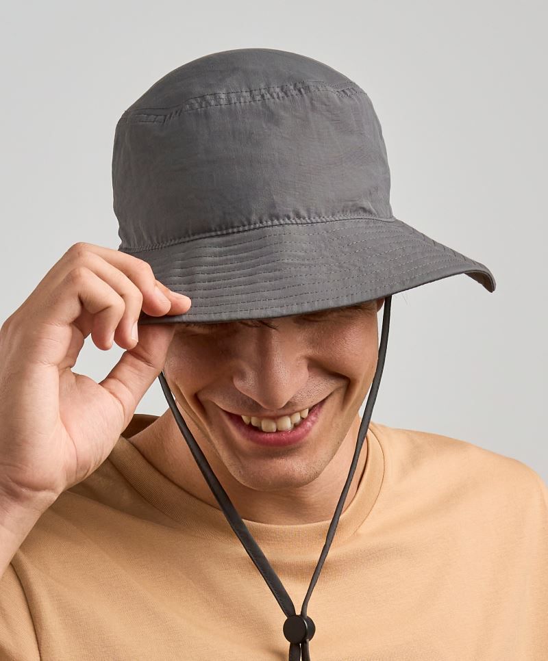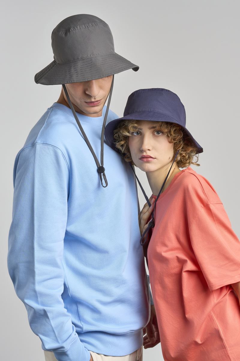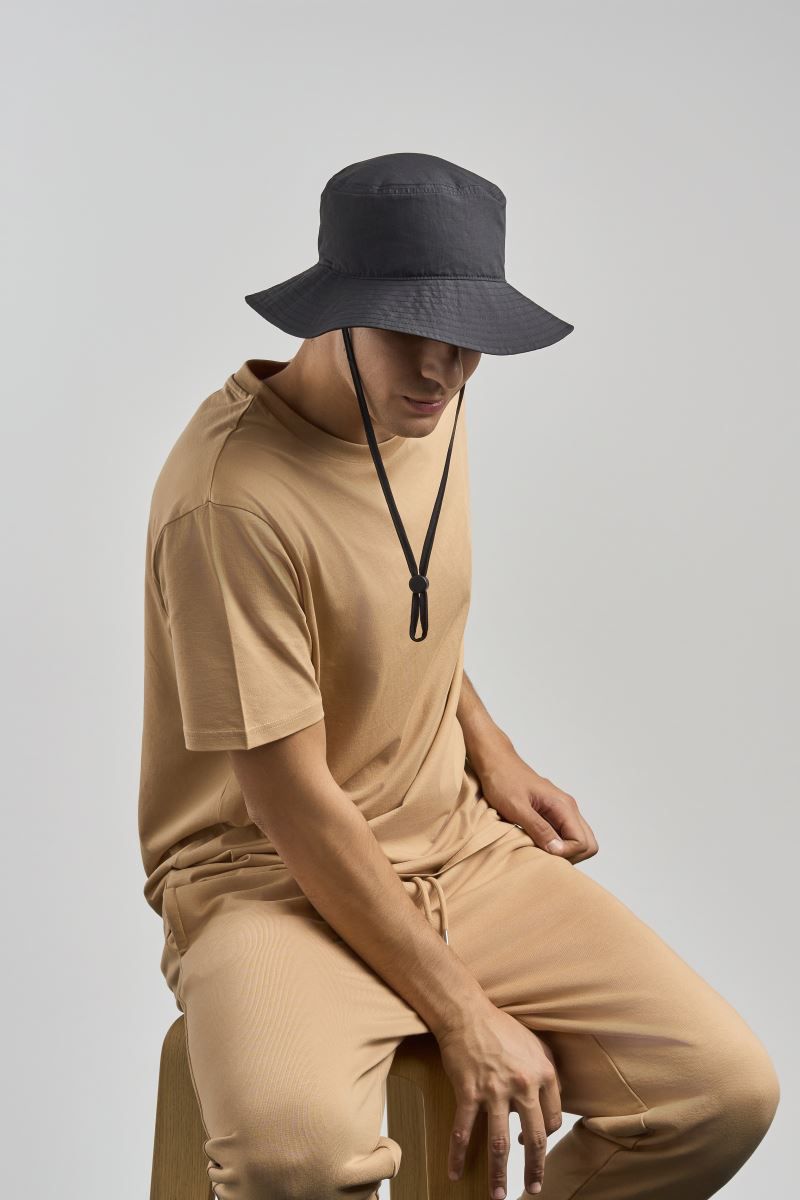 Šikmá krempa s ozdobným prešívaním, ekologická vodeodpudivá úprava (bez PFC), nastaviteľná šnúrka so zarážkou, Dry-Tech potný pásik z recyklovaného polyesteru, dá sa zmenšiť a zabaliť, skladací, štítok TearAway, ručné pranie, nemožno žehliť, nemožno sušiť.
