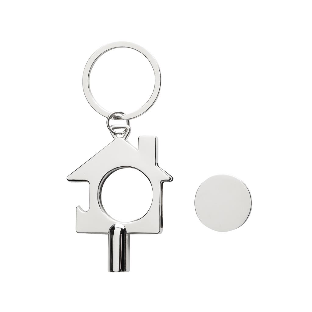 Multifunkčná kľúčenka s otváračom na fľaše, žetónom na nákupný kôš a kľúčom na radiátor. Vyrobená z RCS recyklovanej zliatiny zinku. RCS certifikácia zaisťuje garanciu použitia recyklovaného materiálu vďaka transparentnému prehľadu nad dodávateľským reťazcom. Celkový podiel recyklátu podľa váhy produktu: 80%. Balené v papierovom obale.