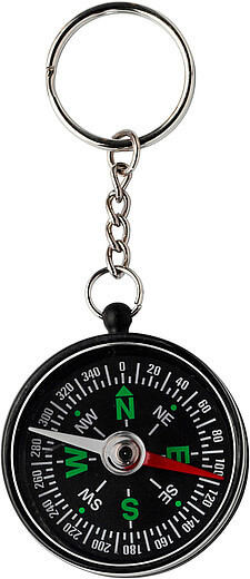 Držiak na kľúče s plastovým kompasom a kovovým krúžkom.