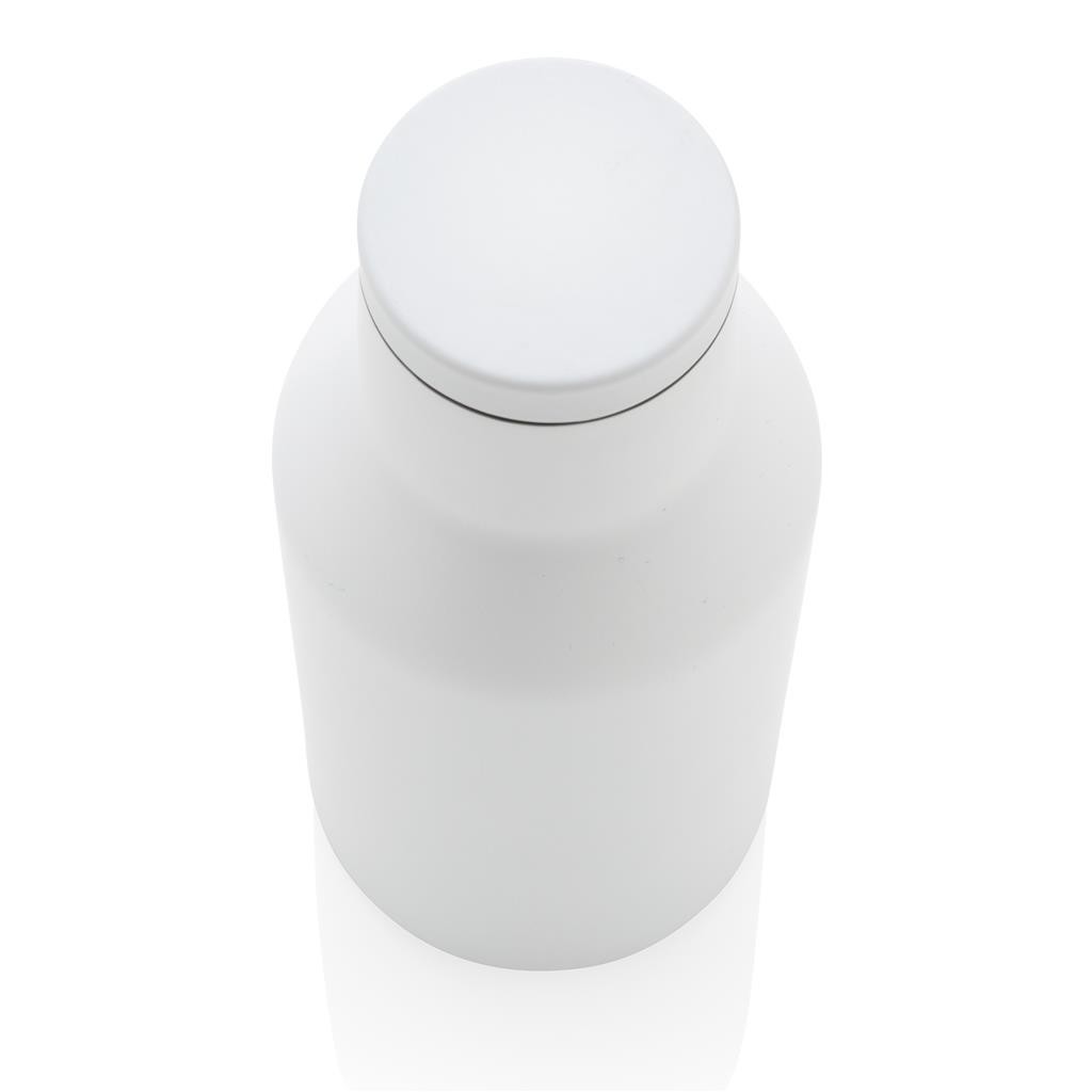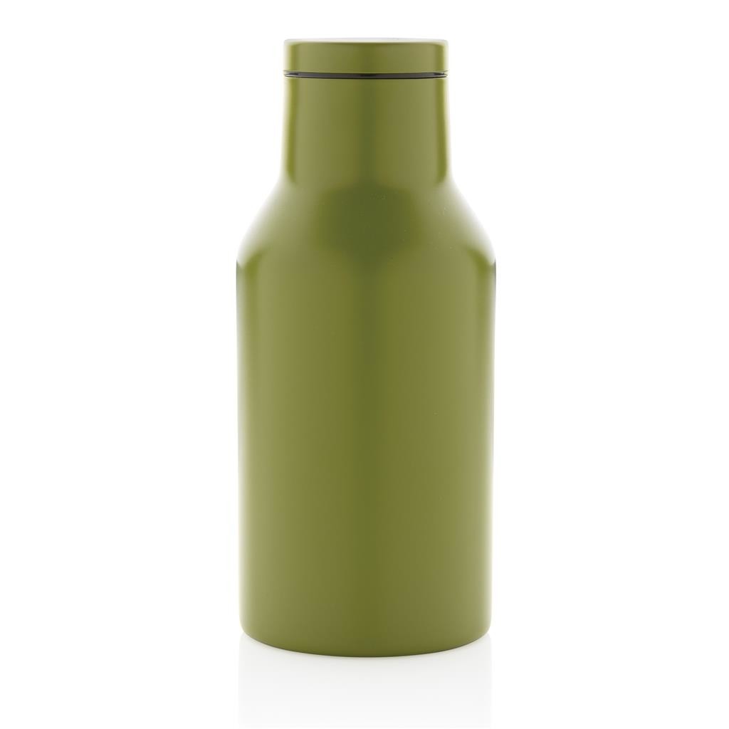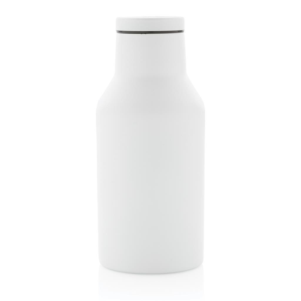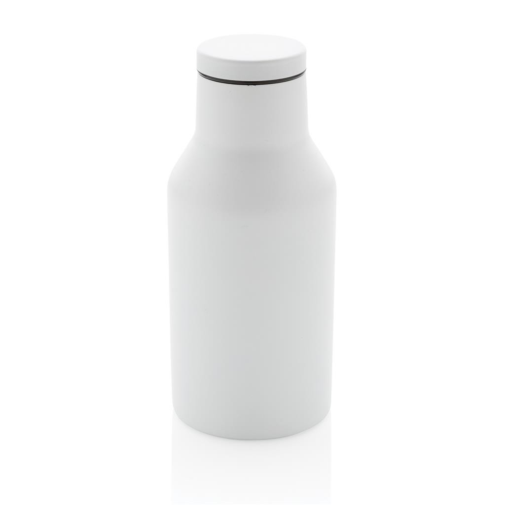 Kompaktná nepriepustná termo fľaša s bezpečným skrutkovacím uzáverom so širokým hrdlom pre ľahké čistenie a plnenie. Dvojstenná vákuová izolácia uchová nápoj horúci po dobu až 3h a studený až 6h. Vyrobené z RCS recyklovanej nehrdzavejúcej ocele. RCS (Recycled Claim Standard) je globálny štandard, ktorý umožňuje overiť použitie recyklovaného materiálu v produkte naprieč celým dodávateľským reťazcom. Podiel použitého recyklovaného materiálu vzhľadom na celkovú váhu produktu: 89 %. Bez BPA. Objem: 300 ml. Balené v FSC kraftovej krabičke.