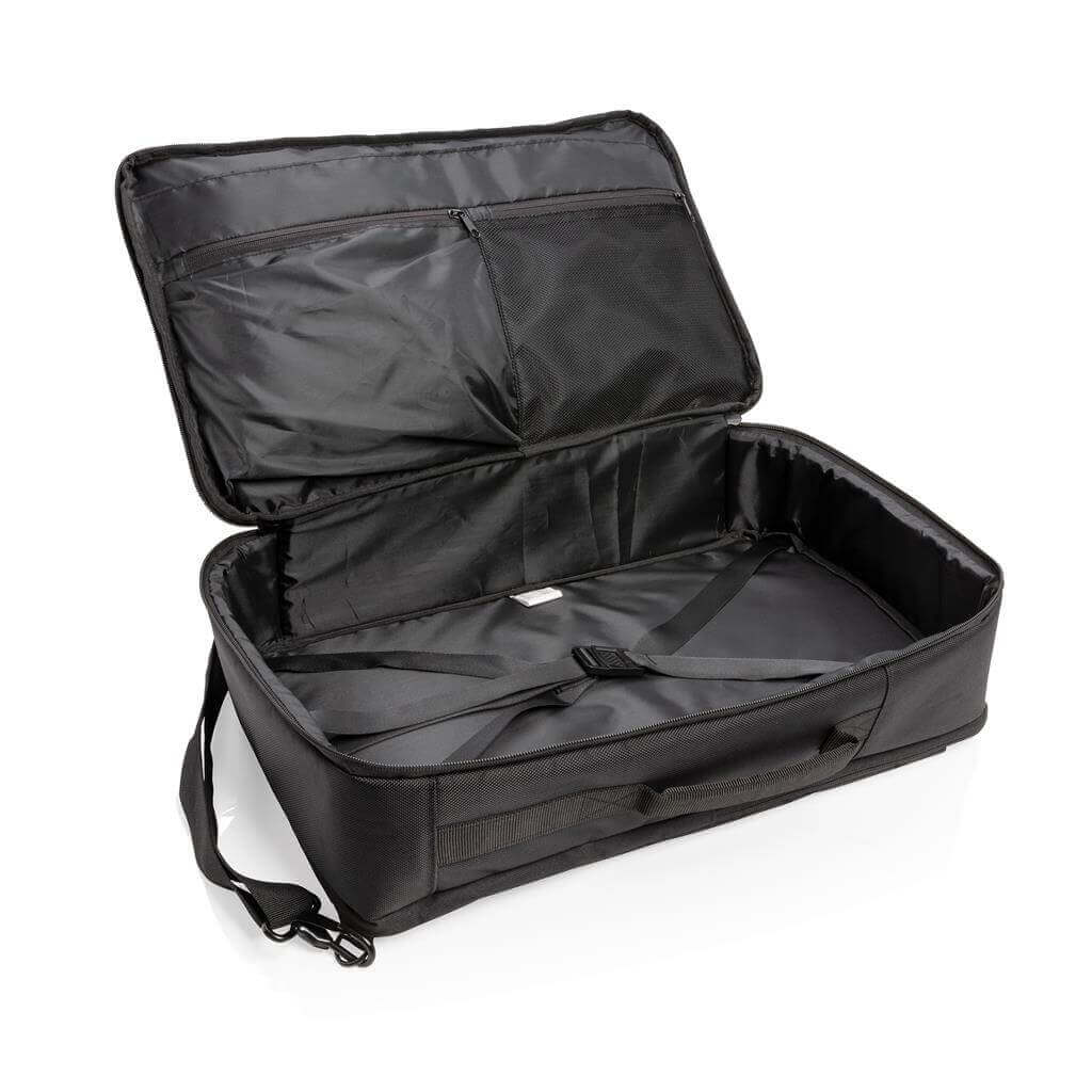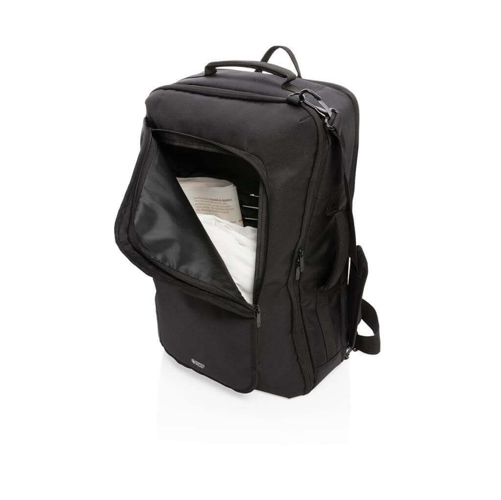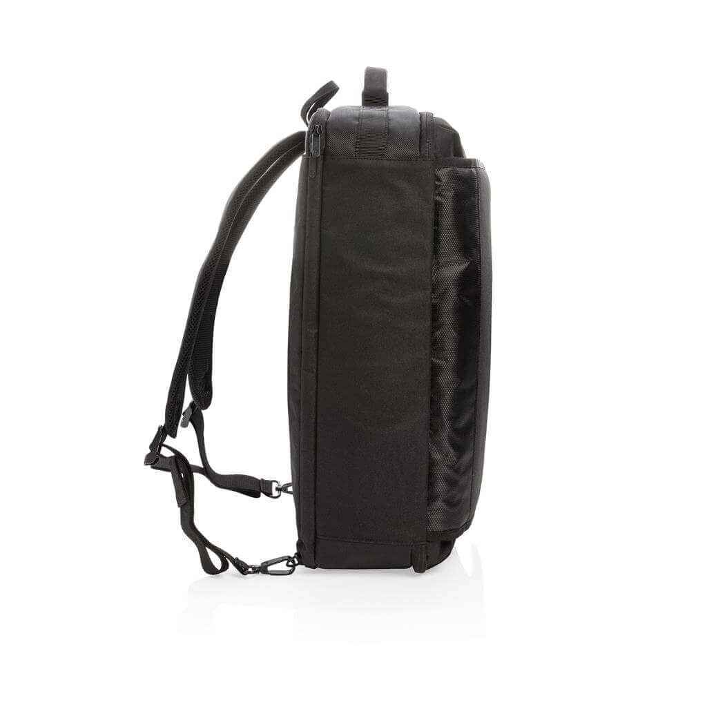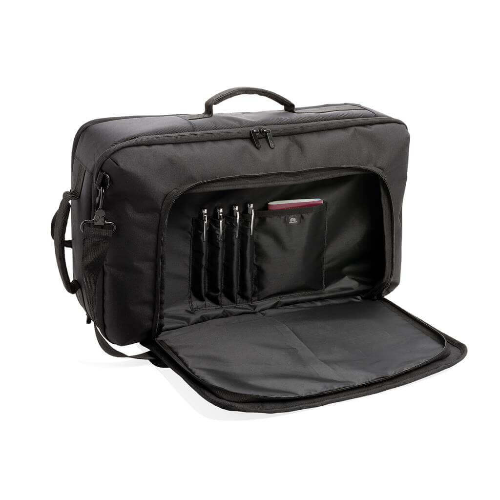Objavte svet možností s unikátnym konvertibilnom batohom Swiss Peak. Funkčné organizácie a biznis funkcie zabezpečujú, že sa batoh stane každodennou voľbou číslo jedna. Prevoditeľnosť spočíva v 4 možnostiach nosenia: 1. Batoh: pripnite polstrované popruhy k bezpečnostným krúžkom a upravte dĺžku podľa potreby. 2. Taška na rameno: uvoľnite a uschovajte popruhy na chrbát do príslušnej vrecka. Potom pripnite ramenný popruh. 3. Crossbody: po naplnení tašky upravte dĺžku ramenného popruhu pre crossbody nosenie umožňujúce pohodlnejšie a bezpečnejšie nosenie. 4. Taška: uvoľnite a uschovajte popruhy. Nosenie v ruke je možné vrchným či postranným úchopom. Veľký hlavný oddiel a predné vrecko na zips. Vrátane RFID vreciek a zadného popruhu pre umiestnenie na madlo kufra. Bez PVC.