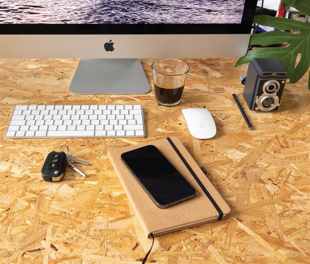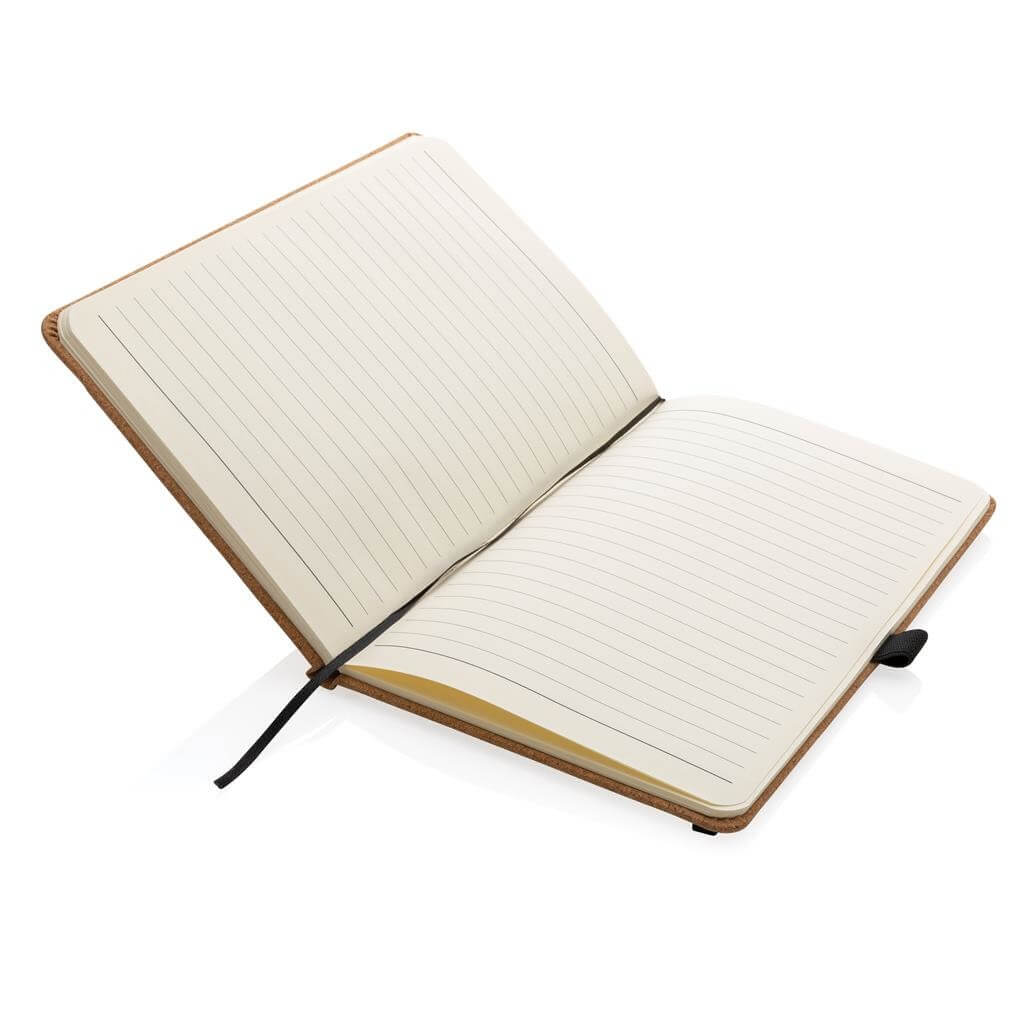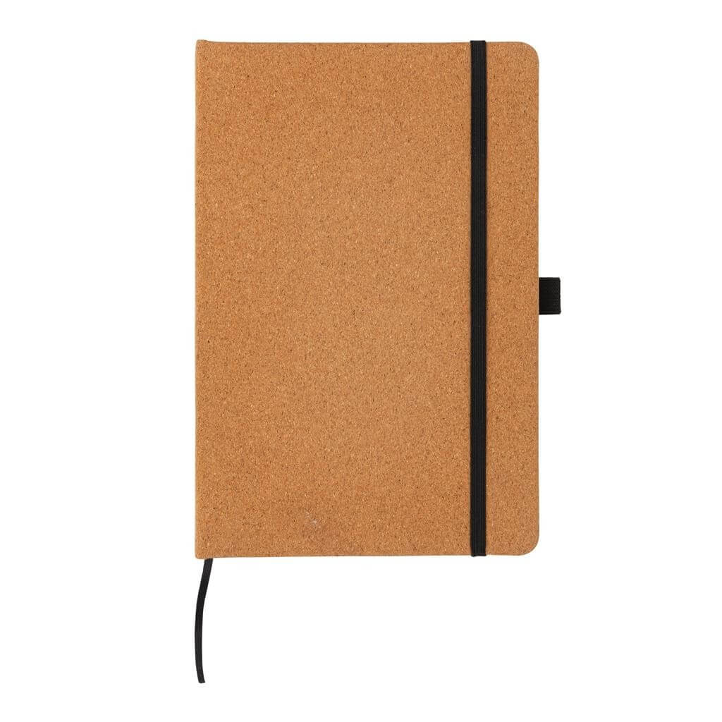 Poznámkový blok ve formátu A5 s tvrdou vazbou. Obal je vyrobený ze silného korku pro moderní vzhled. Čierna elastická gumička, záložka a pútko na pero. Obsahuje 96 listov/192 strán A5 krémového linkovaného papiera o gramáži 70 g/m2.