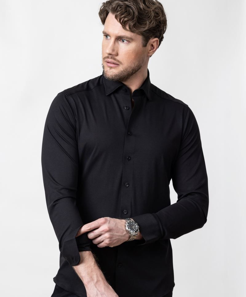 Klasický strih, skrytý button-down golier typu cutaway, sedlo, nastaviteľné manžety s 2 gombíkmi, záševky na chrbte, pružný materiál, tkanina pre ľahkú údržbu, vyrobené z dlhovláknovej bavlny, prateľné na 40 °, ľahké žehlenie, nemožno sušiť v sušičke.
