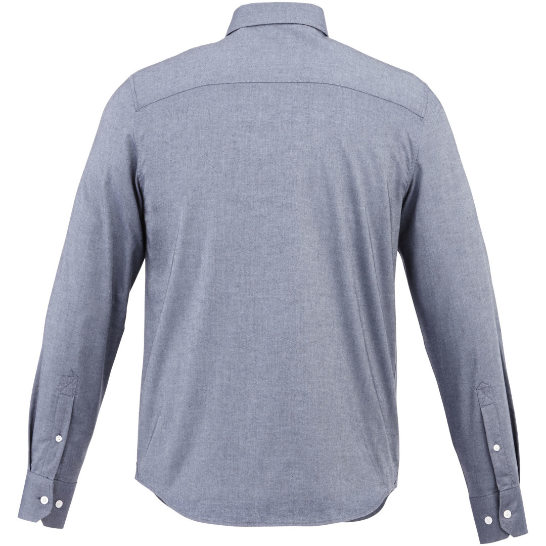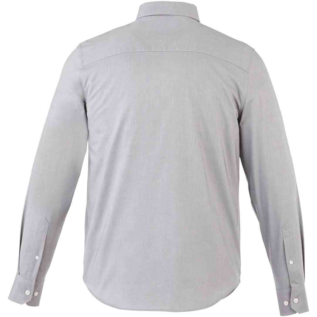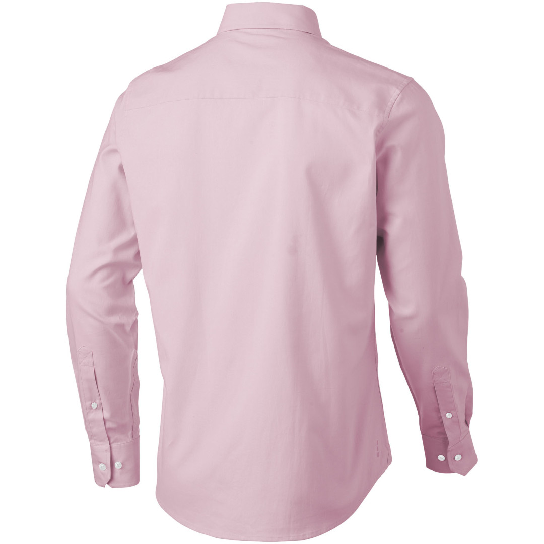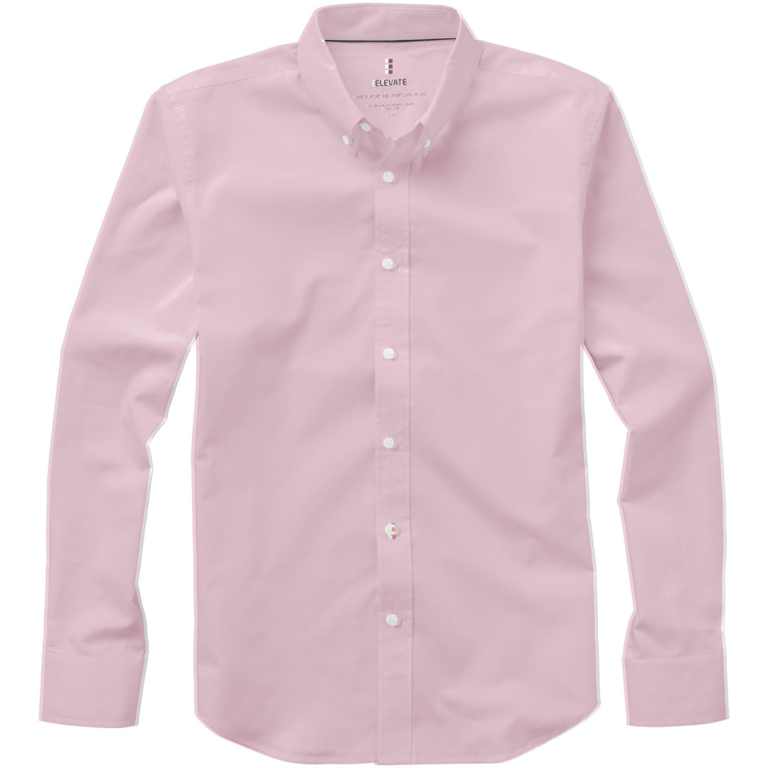 Košeľa Vaillant. Pánsky strih s golierom na gombíky. Biele gombíky s gravírovaním Elevate. Druhá gombíková dierka od spodného lemu s oranžovým stehovaním. Manžetky s dvoma gombíkmi pre nastavenie veľkosti. Rozparok rukáve so zapínaním na gombík. Logo tlačené v farbe na chrbte. Hodvábne lemovanie vnútorného výstrihu. Oxford, 100% bavlna, 40x32 / 2, 110x50. 140 g / m².