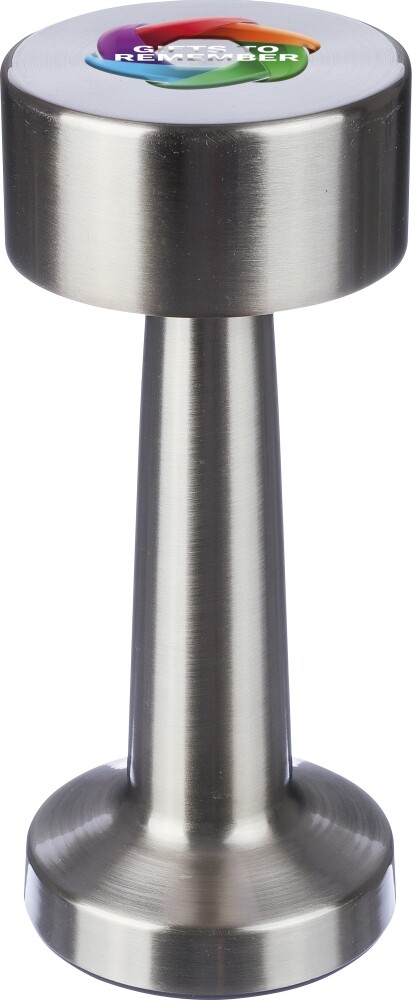 Stolová lampa z kovu a ABS plastu s 24 LED diódami a tromi režimami svietenia (biely, neutrálny, teplý) ovládanými dotykovým senzorom na hornej strane. Súčasťou je batéria s kapacitou 800 mAh a nabíjanie cez Type-C kábel s dĺžkou 1 metra. Lampa je stmievateľná pre každý režim svietenia a má tlačidlo zapnutia/vypnutia na spodnej strane. Jednotlivo balené v hnedej kartónovej krabici. Výška: 21,5 cm