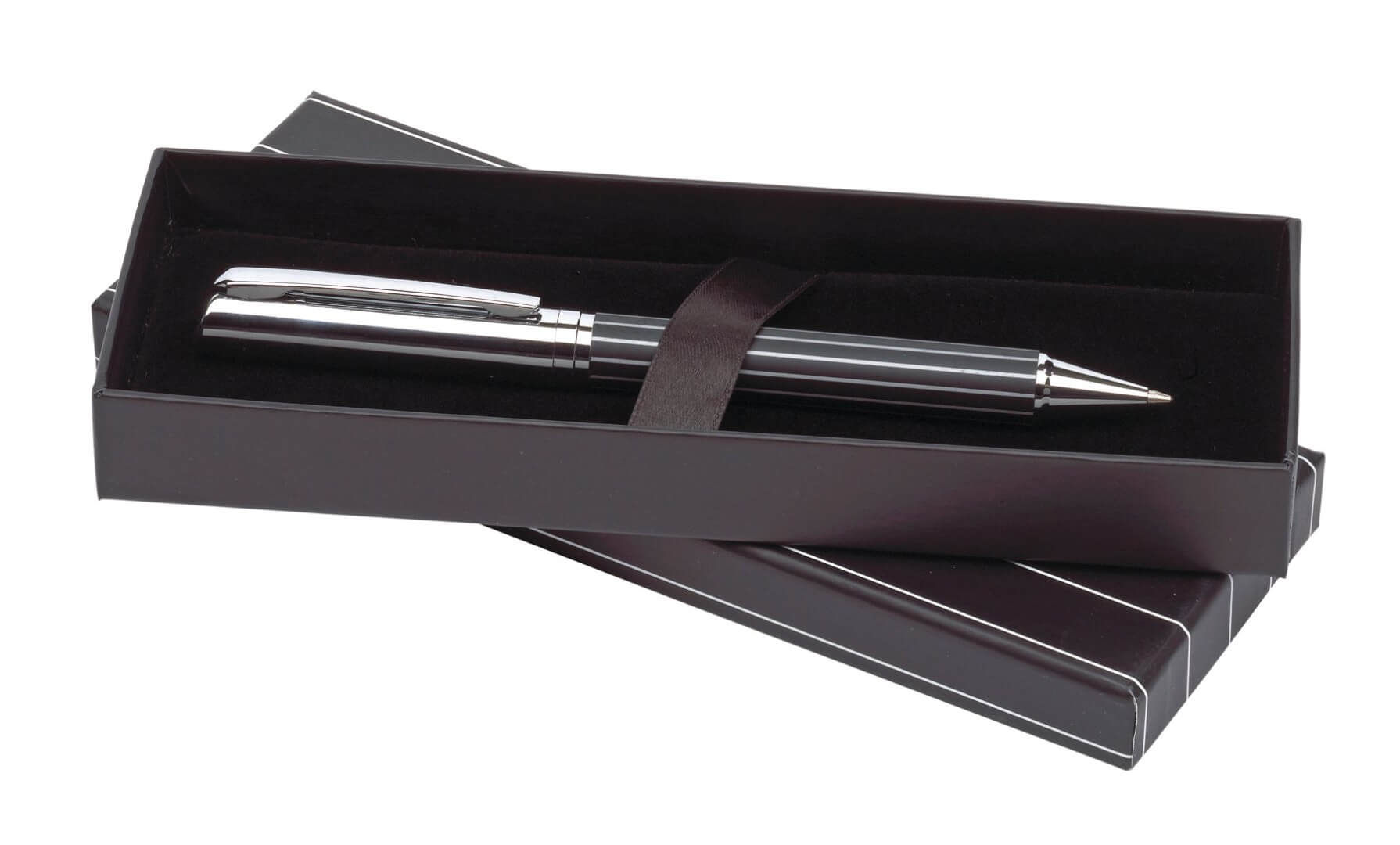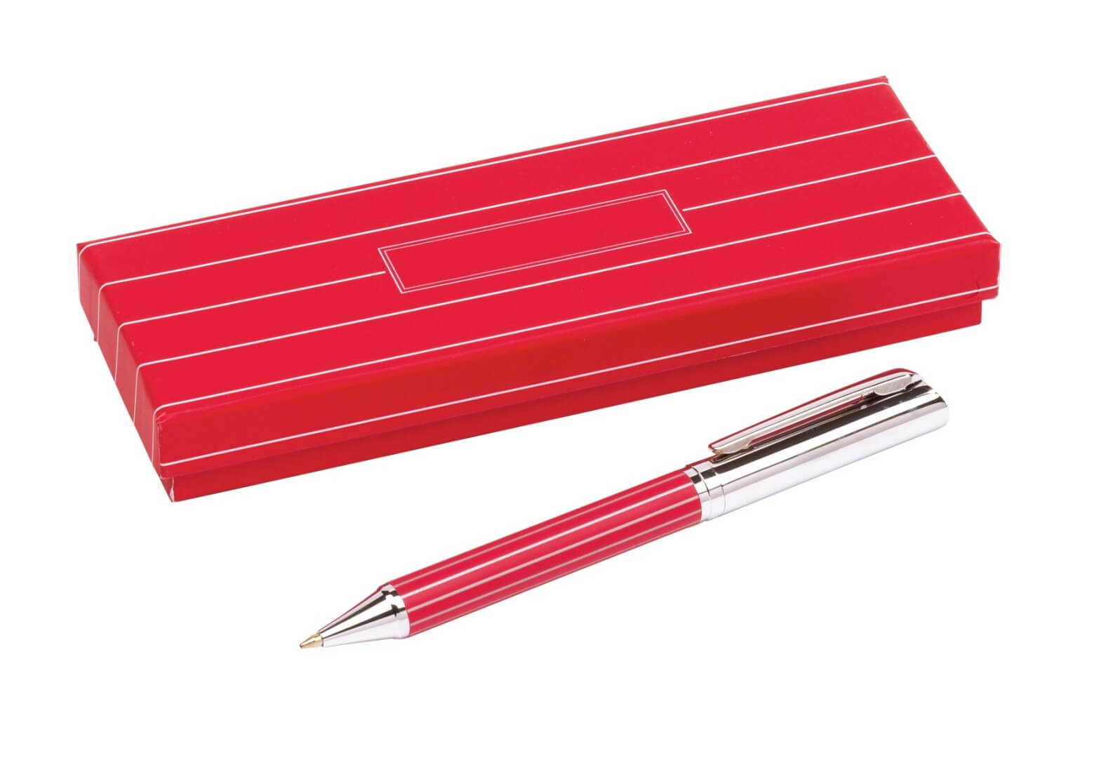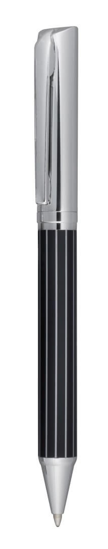 Kovové gulôčkové pero Adorno: s otáčacou mechanikou, telo s pruhovaným dizajnom, modrým atramentom, dodávané v zodpovedajúcej pruhovej krabičke
