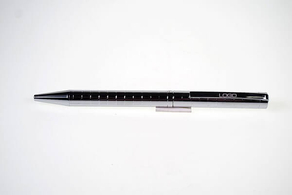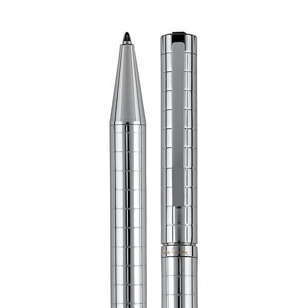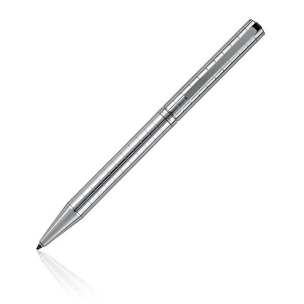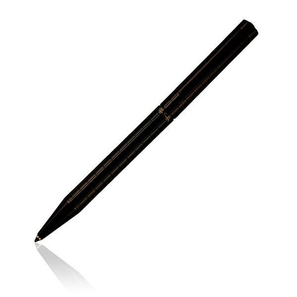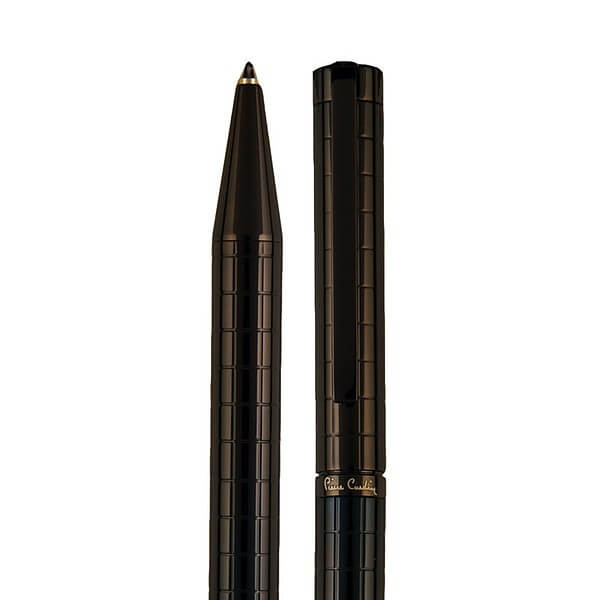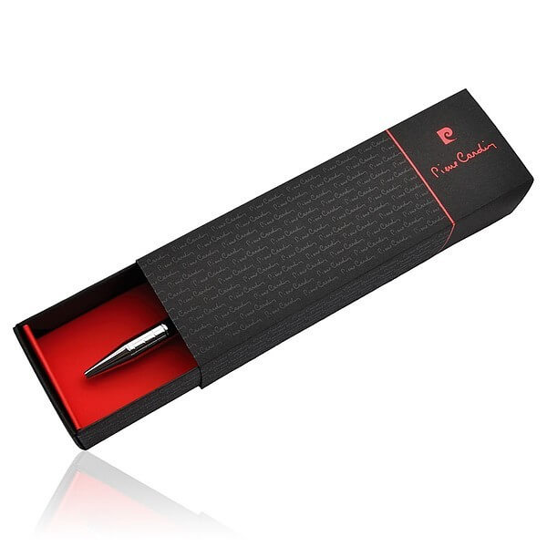 Značkové kovové guličkové pero Pierre Cardin s otočným mechanizmom. Telo pera je ozdobené šachovnicovým rytím, obsahuje kvalitnú náplň v modrej farbe s hrotom 1 mm. Dodávané s náhradnou čiernou náplňou. Balené v luxusnej krabičke Pierre Cardin, dodávané s certifikátom pravosti.
