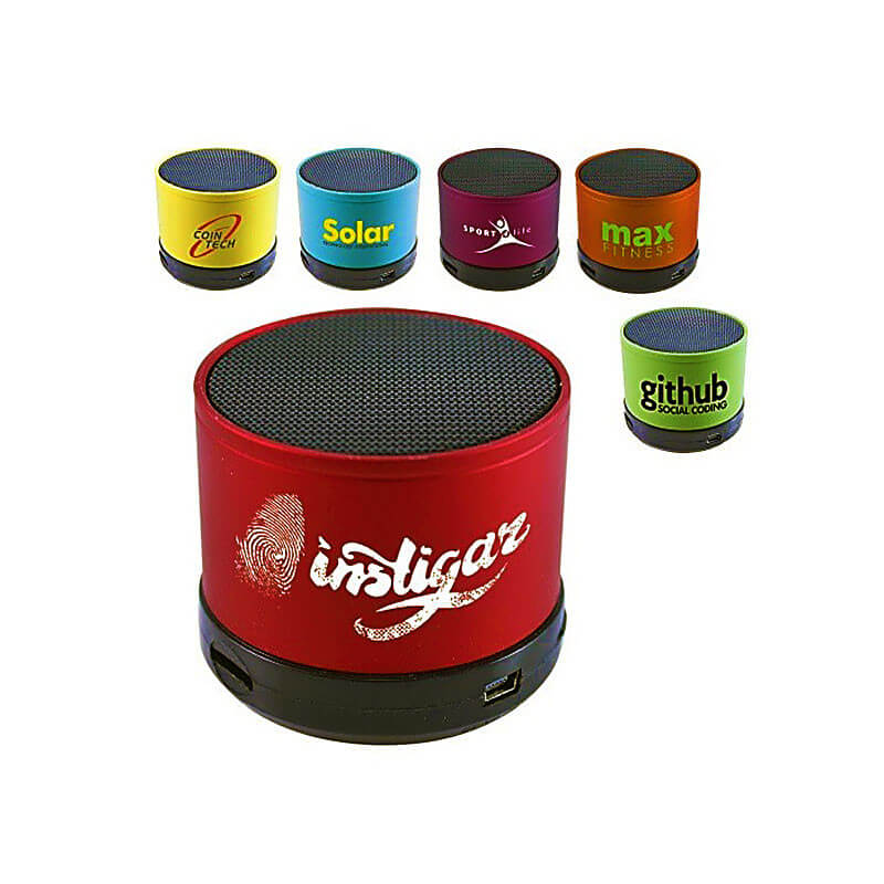 Malý a šikovný Bluetooth reproduktor je veľký 6 x 5 centimetrov, ale skvele vylepší prehrávanie hudby z mobilného prístroja. Bezdrôtový reproduktor spojíte so svojim mobilným zariadením pomocou technológie Bluetooth 3.0 s dosahom približne 10 metrov. Hudbu prehrávate aj bez zapojenia do elektriny vďaka vnútornej batérii s kapacitou 300 mAh. Elegantný oválny design vyzerá na pohľad príjemne. Na farebný kovový obvod reproduktora sa dá umiestniť ľubovoľná farebná potlač.