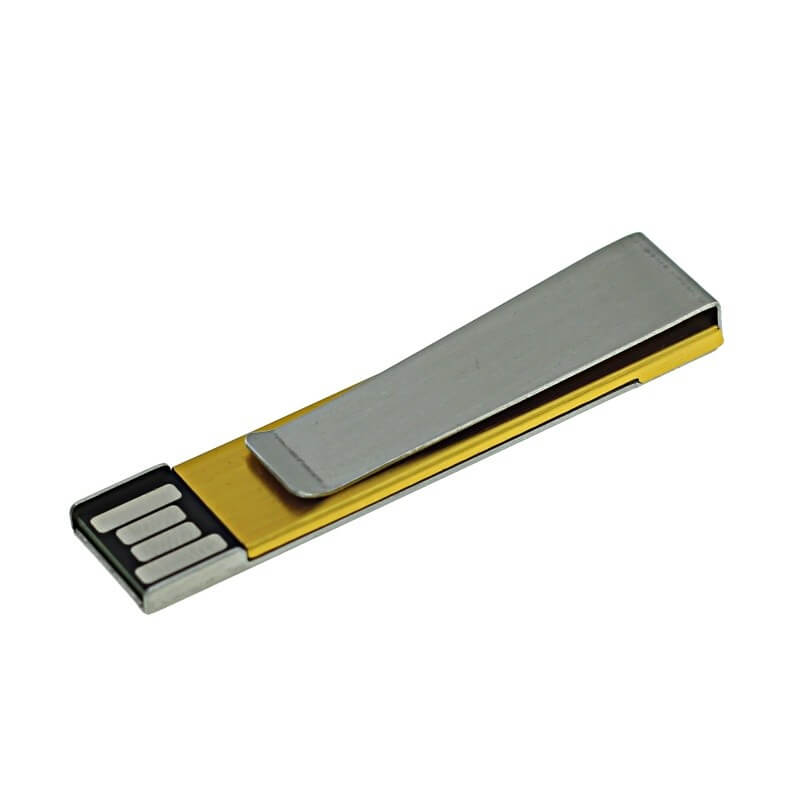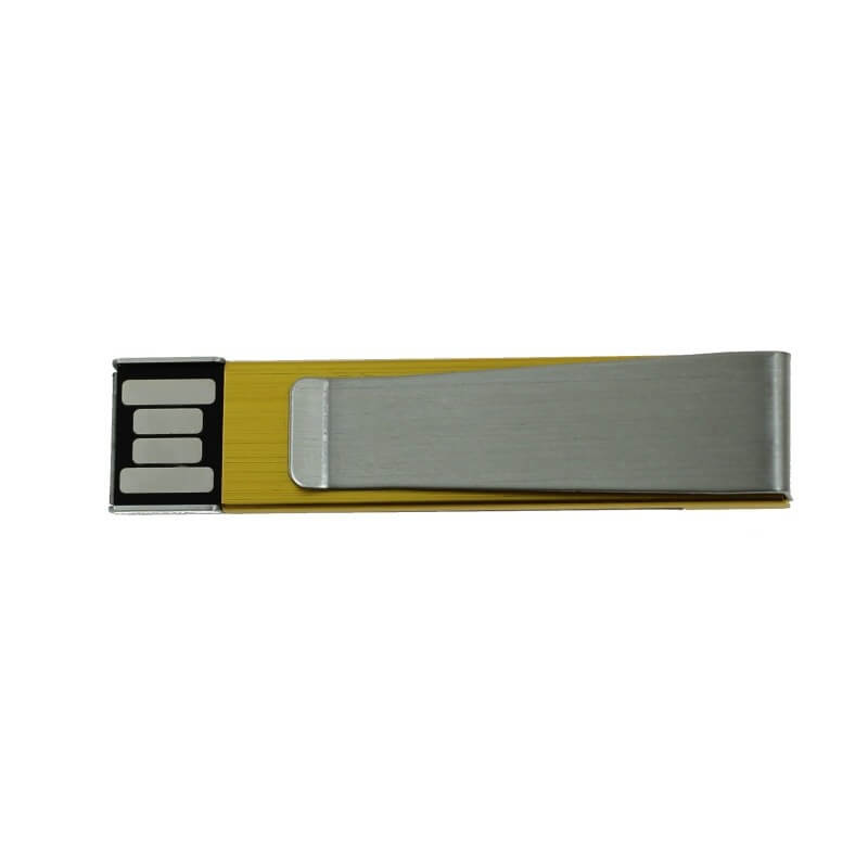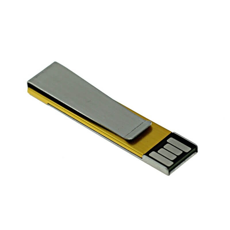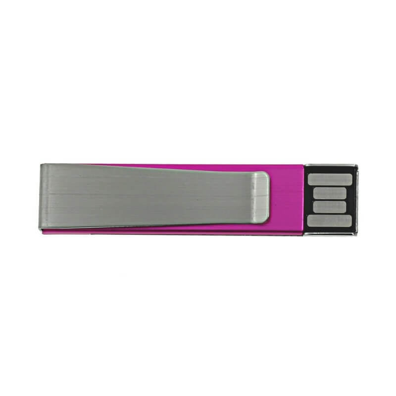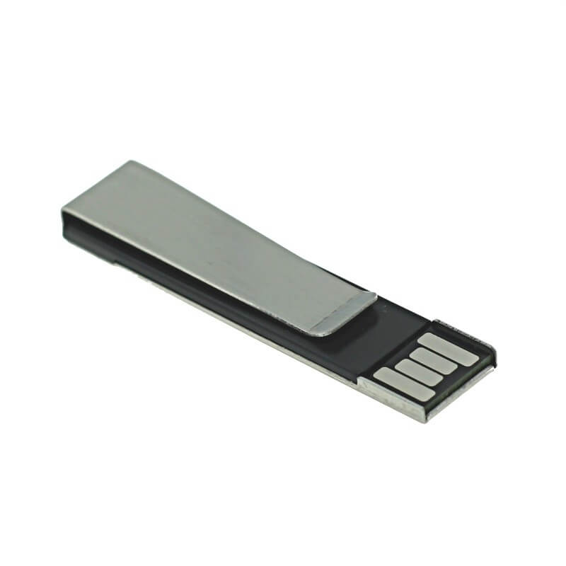 Kovový mini USB flash disk - spona. Vhodný na pripnutie do prezentácie, alebo napríklad ako spona na kravatu. Logo je možné natlačiť, ideálny je ale laser, flash disk potom pôsobí luxusnejšie.