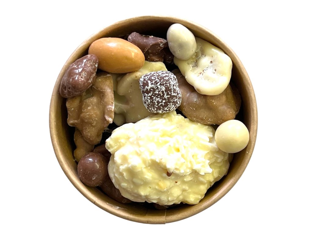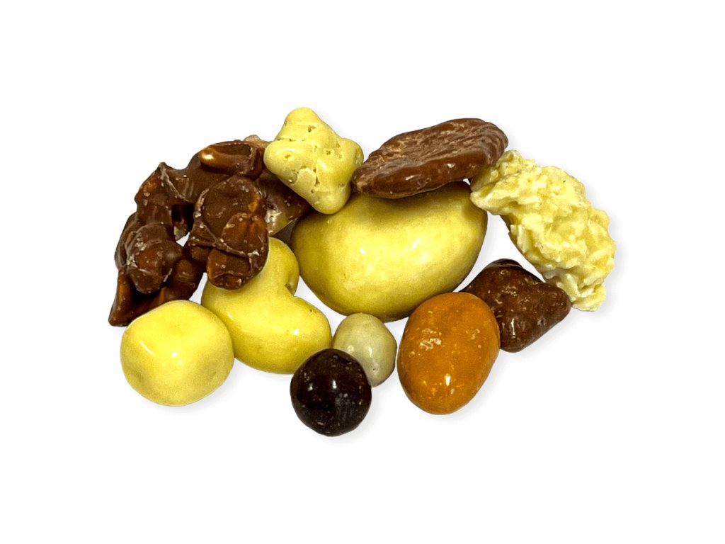 Ste milovníci čokolády? Ste milovníci orechov? Ste milovníci pestrosti a rôznorodosti. Tak práve pre Vás je pripravená táto kráľovská zmes. Niekoľko druhov v jednej zmesi. Arašidy, mandle, hrudky, kokos, banánové chipsy, lieskové oriešky, vankúšiky, kešu...