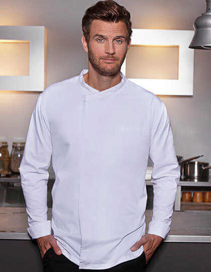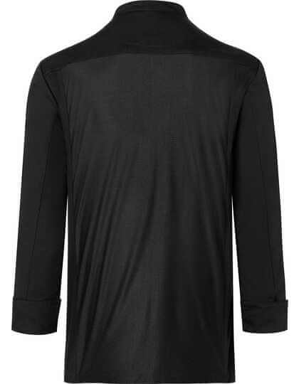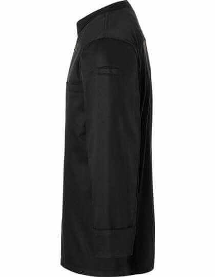Predný diel: Materiál hlavnej časti: 65 % polyester / 35 % bavlna, 200 g/m² | Zadný diel: Žerzej, 100% polyester, priedušný, regulujúci vlhkosť | Štýlový kuchársky rondon cez hlavu s dlhými rukávmi | Džersejová vložka na zadnej strane (sieťovinová štruktúra) zaisťuje maximálne pohodlie a vetranie | Rovný strih | Skrytý diel s patentkami | Košeľu je možné rozšíriť pomocou patentiek, aby sa ľahšie obliekala | Rovné manžety s rozparkom pre vyhrňovanie | Lemované vrecko na ľavej strane hrudi | Lemované vrecko na ľavom rukáve