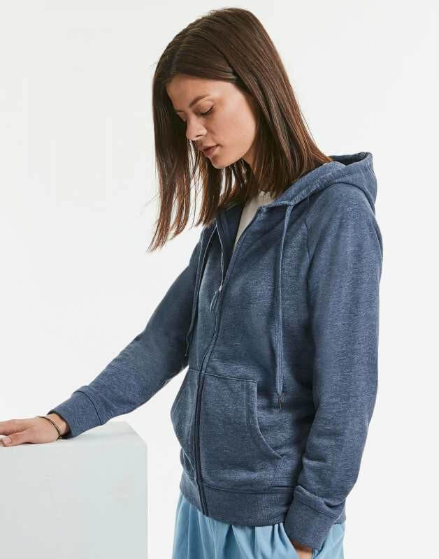 255 g/m2 (biela: 250 g/m2), 65% polyester, 35% bavlna, ring-spun a česaná french Terry, kapucňa podšitá jersey s farebne ladiacou šnúrkou s kovovým koncom, kontrastná páska za krkom, odstrániteľný štítok, dlhý zips, skryté vrecko na mobil, klokanie vrecko, obšité manžety a spodný lem, vypasovaná, vhodná pre sublimáciu, sieťotlač, tepelný transfer a výšivku