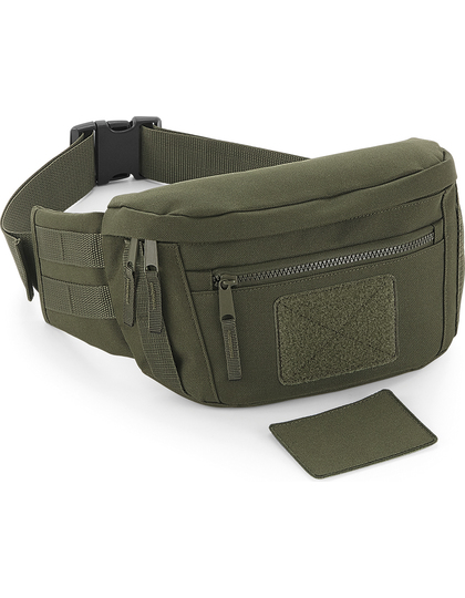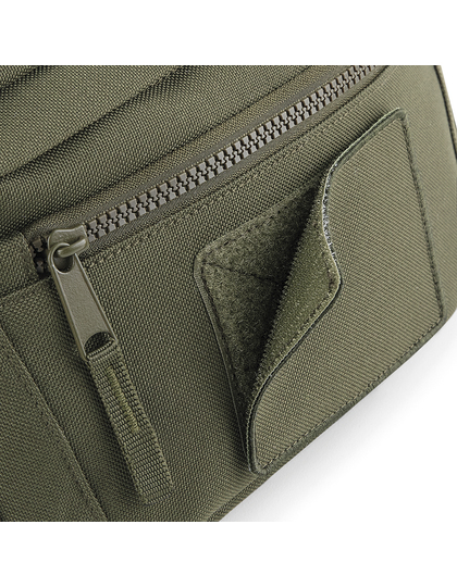Polyester 600D | Odtrhávací štítok pre jednoduchú zmenu dizajnu | Vymeniteľná vložka Rip-Strip™ určená na dekoráciu | Hlavné vrecko na zips | Predné vrecko na zips | Ozdobné pútko popruhu MOLLE | Nastaviteľný pásik z popruhoviny s bezpečnou sponou | Dodávka bez obsahu/dekorácie | Kapacita: 3 l.