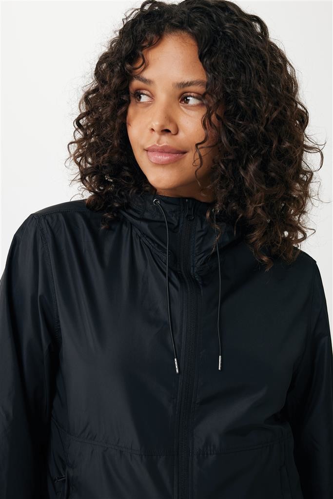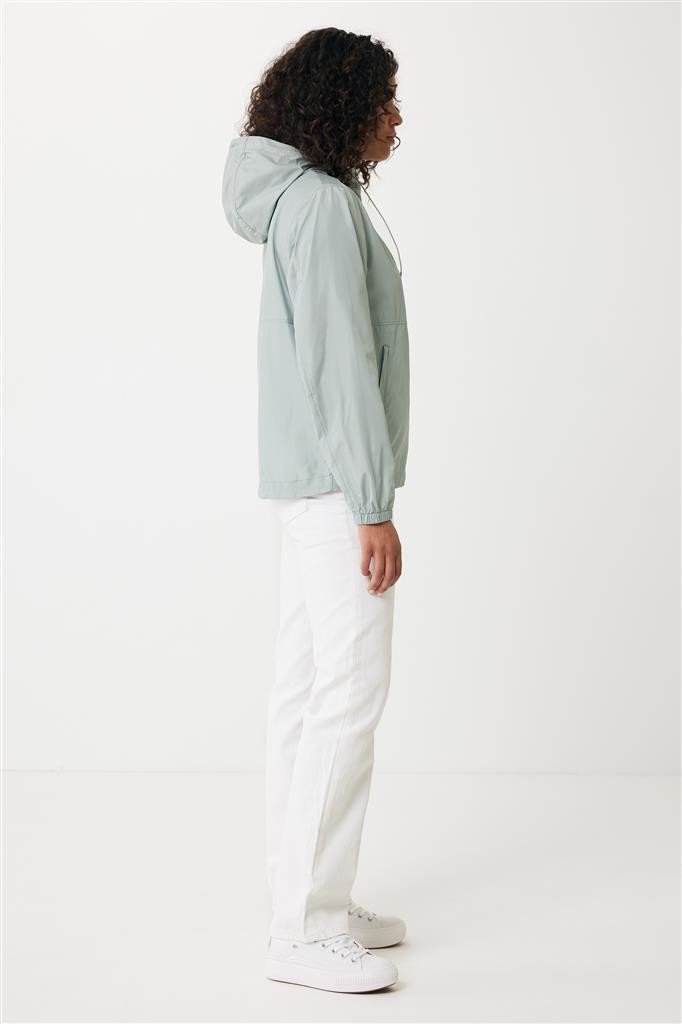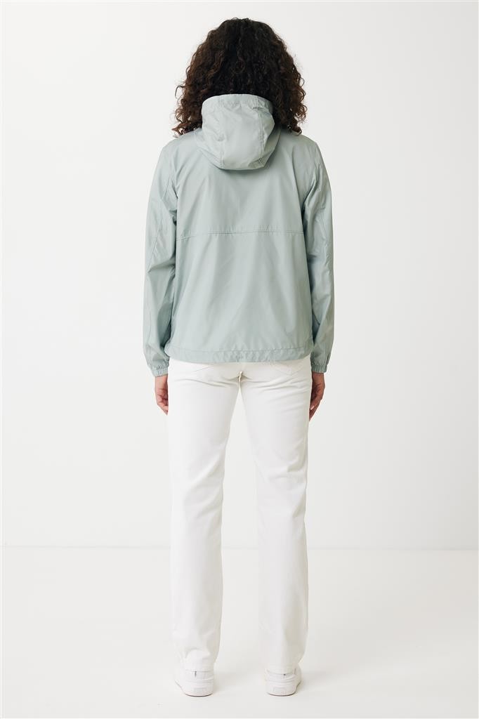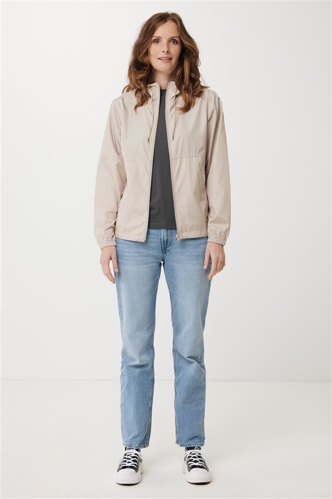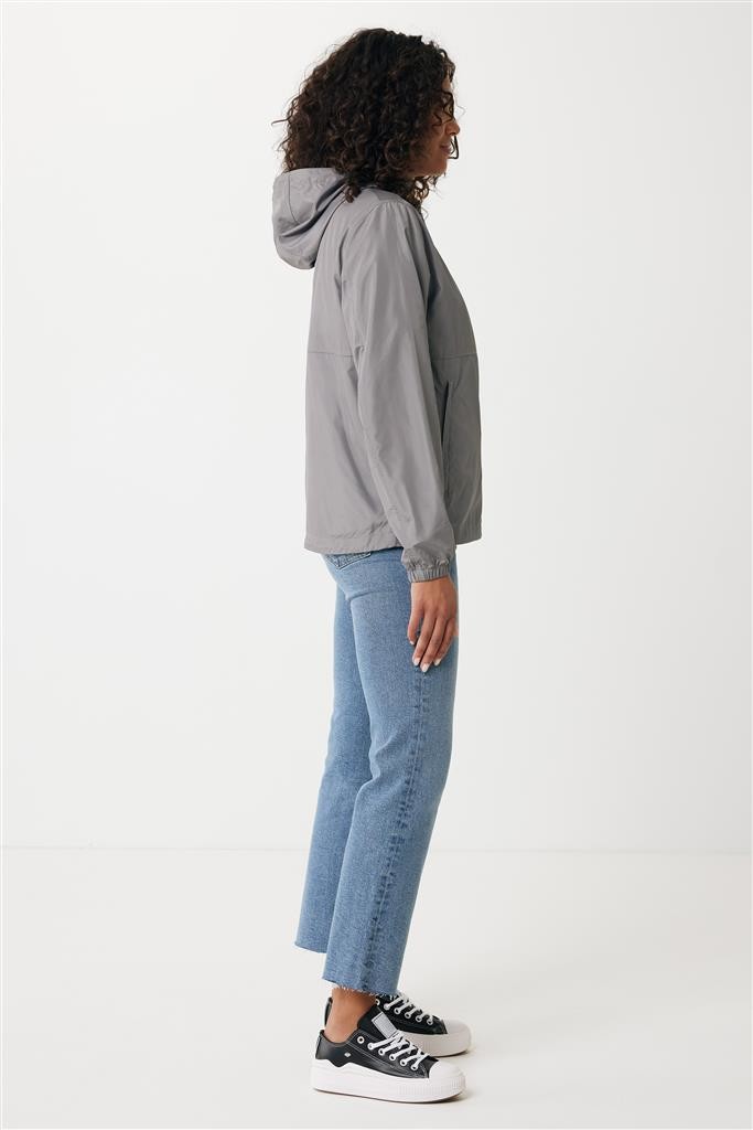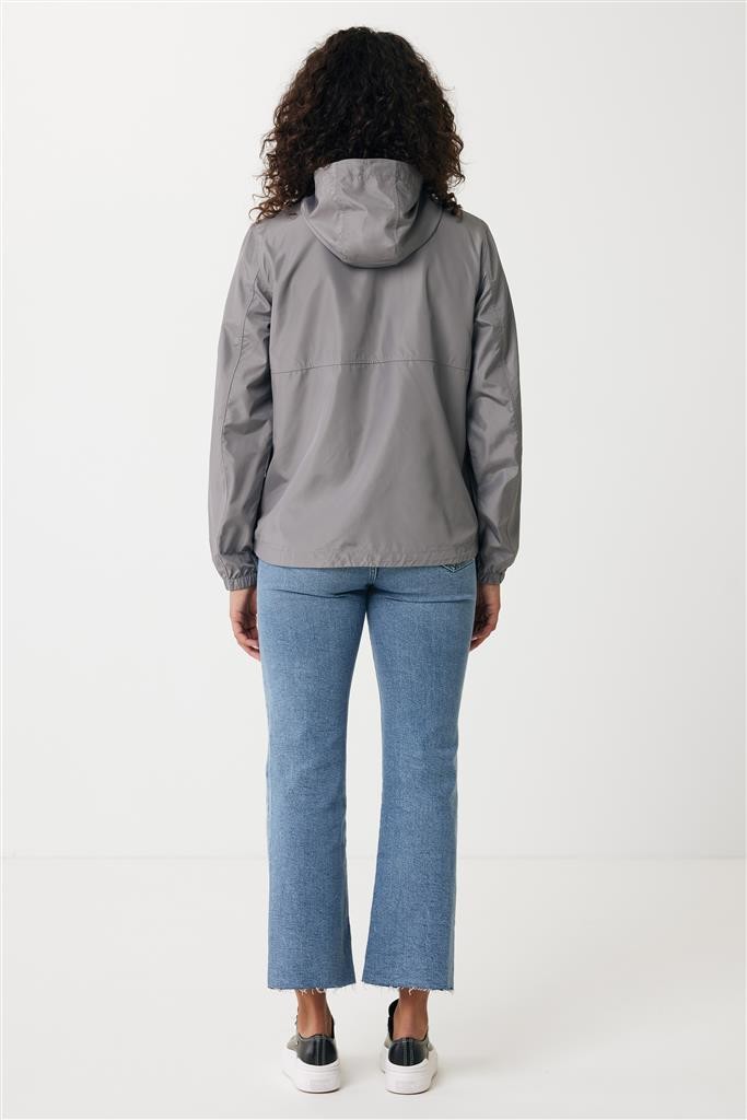 Unisexová ľahká bunda vyrobená zo 100% post-consumer recyklovaného polyesteru s gramážou 70g/m². Sťahovacia kapucňa, obojstranný zips na prednej časti, švy prešité vrecká. Ťahače zipsov v ladiacich odtieňoch. Plne elastické manžety. Predĺžená, do oblúka zakrivená zadná spodná časť, spodný lem s elastickou sťahovacou gumičkou pre vyššiu ochranu. Vode repelentná impregnácia bez obsahu fluórinu/PFAS. Obsah recyklovaných materiálov je garantovaný vďaka využitiu technológie AWARE™, ktorá kombinuje možnosť skenovania materiálu a technológiu blockchain. Každý produkt Iqoniq vlastní unikátny štítok s QR kódom, ktorý odkazuje na príslušný digitálny pas produktu. 2% z výťažku každého predaného kusu je darovaných na Water.org. Certifikované OEKO-TEX® STANDARD 100.