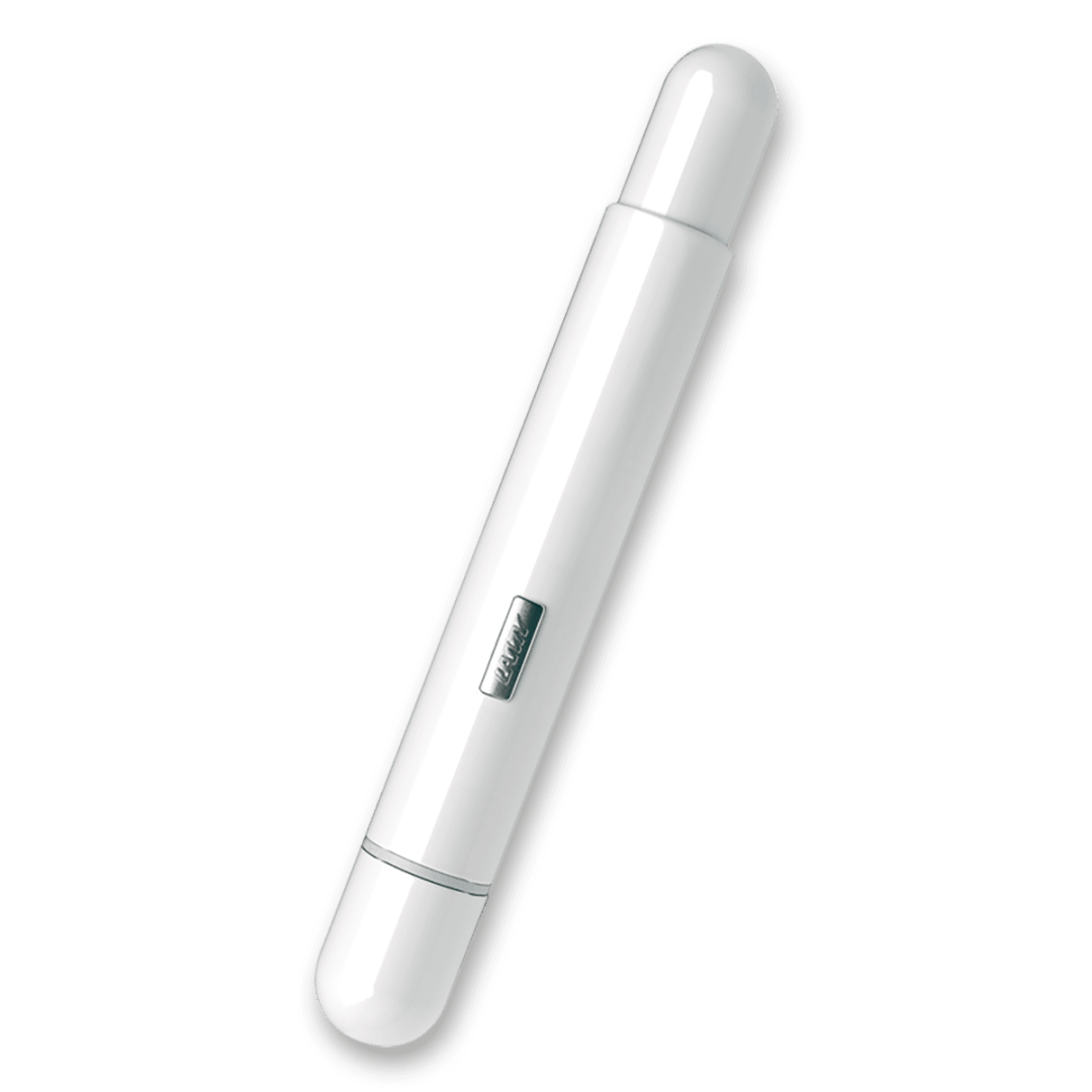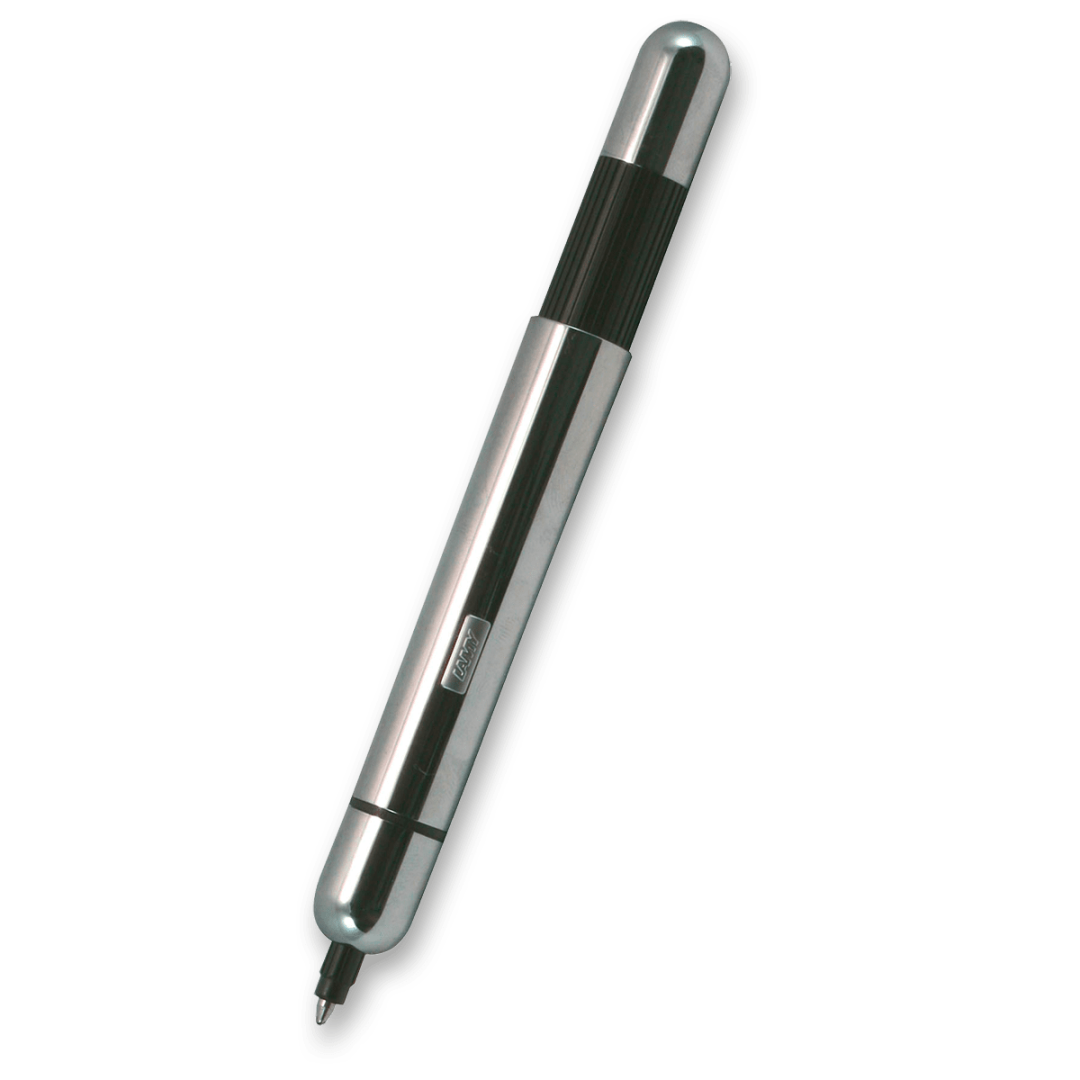 Vreckové guľôčkové pero Lamy Pico s vysoko lešteným pochrómovým telom a logom zabraňujúcim skotúľaniu pera zo stola.