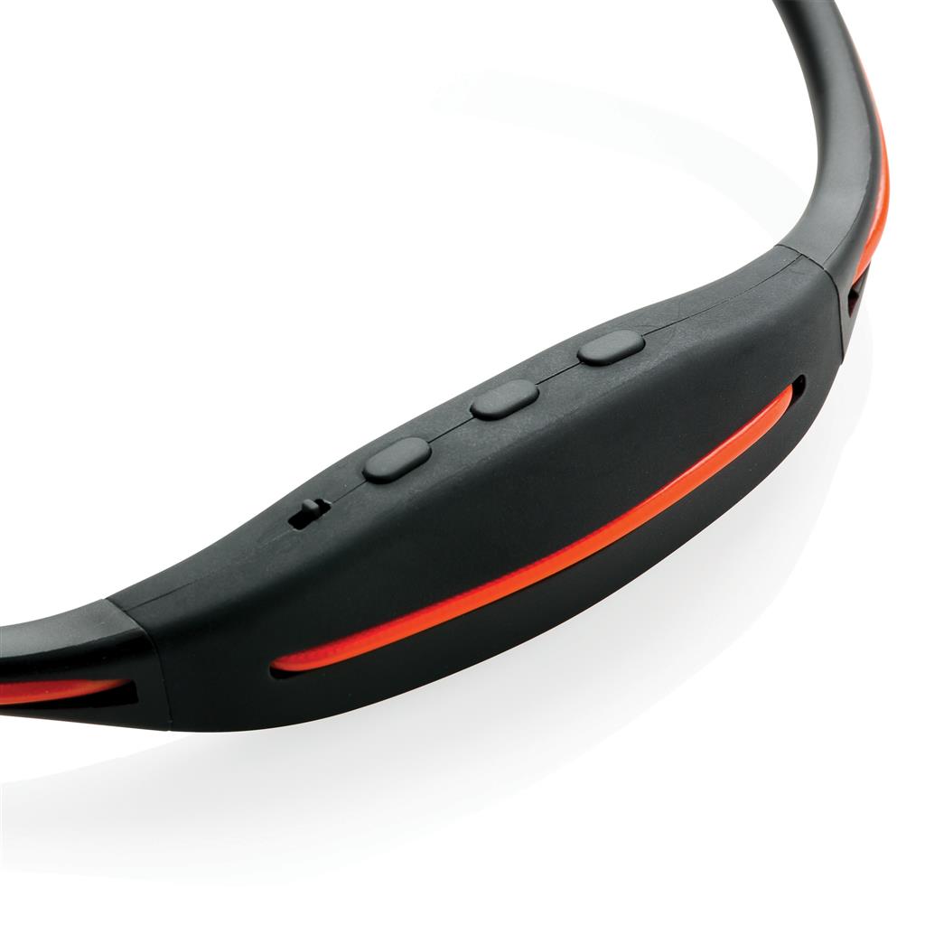 Bezdrôtové slúchadlá na behanie s integrovaným LED svetlom pre zaistenie optimálnej bezpečnosti. Váha je ideálne rozložená na dosiahnutie perfektného a pohodlného zážitku z cvičenia. Integrované červené LED svetlo zabezpečuje