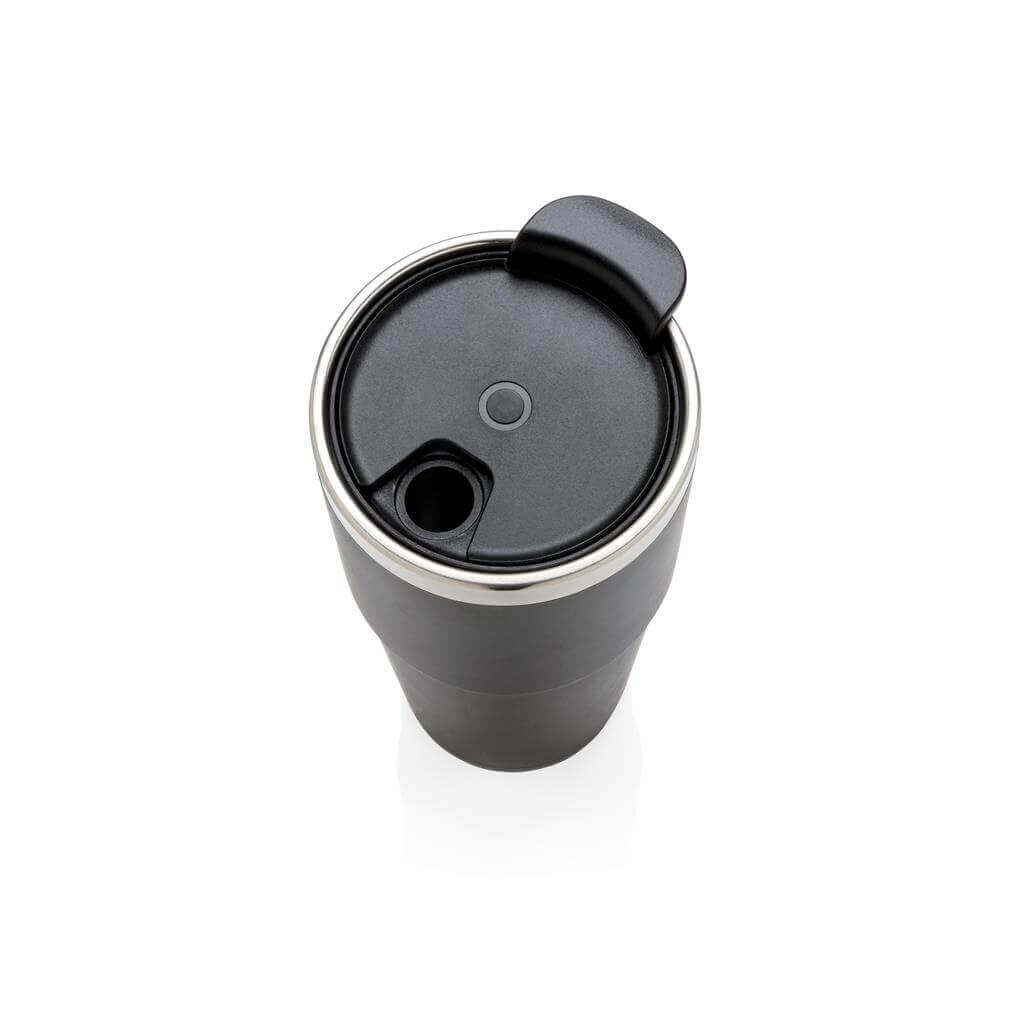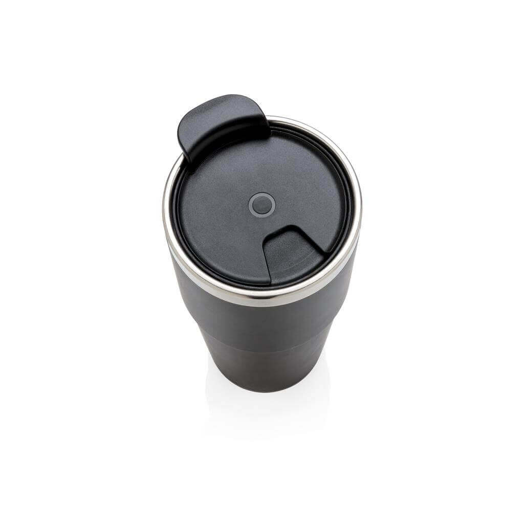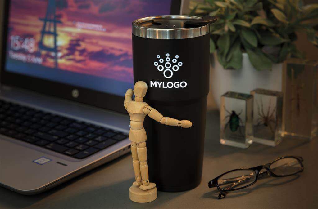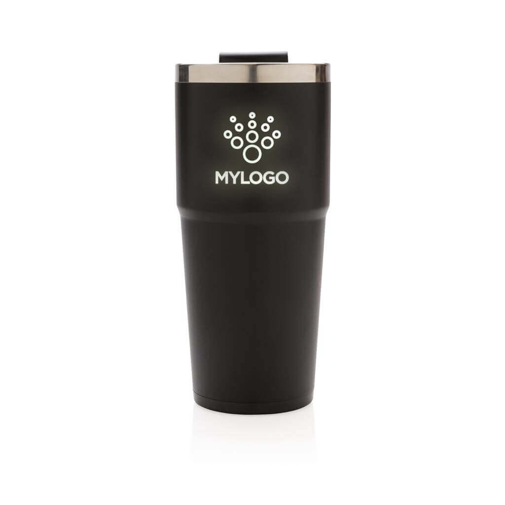 Termohrnček s dvojitou stenou, vyrobený z nerezovej ocele (vnútri 304 SS, vonkajšie ABS plast). Gravírované logo sa po zatrasení osvetlí. Obsahuje 2 CR2032 batérie. Objem 480 ml. 2 baterie typu button cell súčasťou balenia.