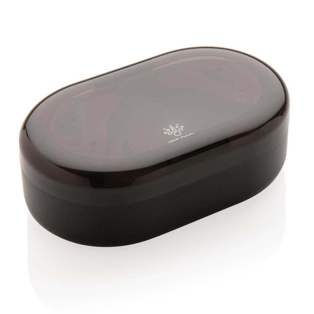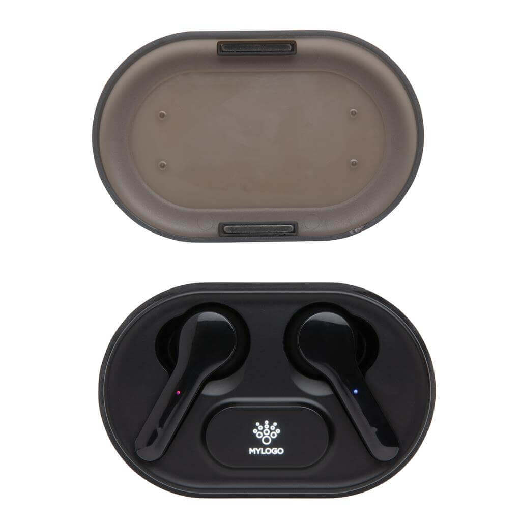 Maximálnu voľnosť pri počúvaní vďaka kompletne bezdrôtovému prevedeniu slúchadiel. Nabíjacia krabička s kapacitou 300 mAh s unikátnou možnosťou brandingu gravírom, ktorého vzor sa pri používaní rozsvieti a logo tak efektne zvýrazní. Výdrž batérie slúchadiel až 3h na jedno nabitie trvajúce 1,5h. BT 5.0 zaisťuje automatické párovanie slúchadiel medzi sebou a s telefónom s dosahom až 10m. S mikrofónom pre príjem hovorov. Vrátane 3 veľkostí nadstavcov do uší a micro USB nabíjacieho kábla z TPE (PVC free). 3 batérií typu Li-poly,súčasť balenia.