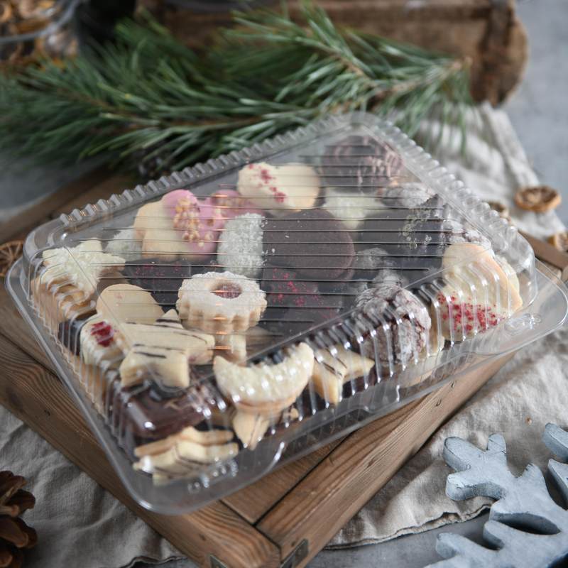 Mix lekvárom lepeného lineckého pečiva s vianočným zdobením.