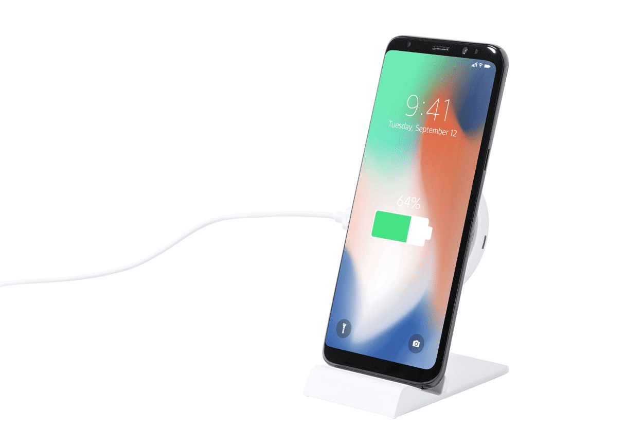 Stojanček na mobil z ABS plastu so zabudovanou výškovo nastaviteľnou bezdrôtovou rýchlonabíjačkou (15W). Vrátane USB nabíjacieho kábla.