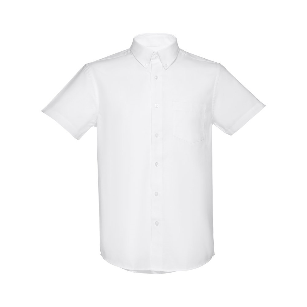 Oxfordská pánska košeľa zo 70% bavlny a 30% polyesteru (130 g/m²). Krátky rukáv. Vrecko na ľavej strane. Golier s 2 gombíkmi. Léga so 7 perlovými gombíkmi. Veľkosti: S, M, L, XL, XXL
