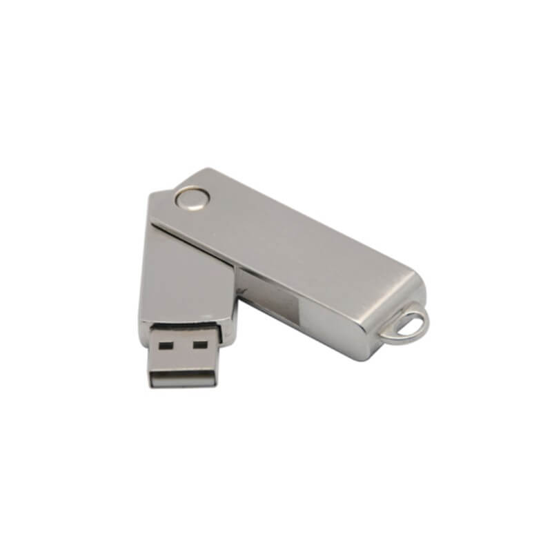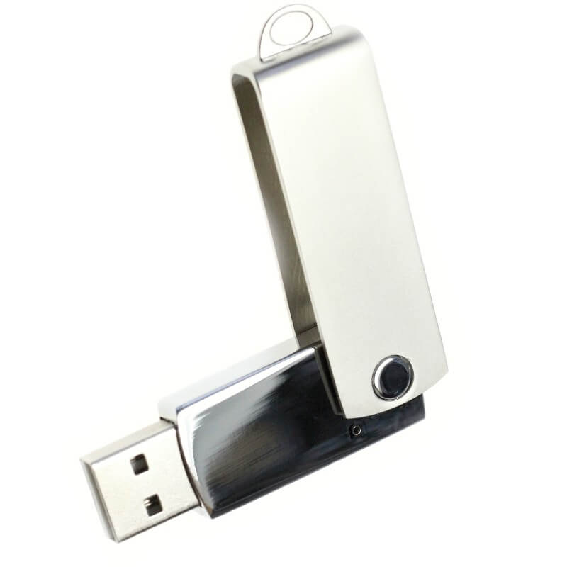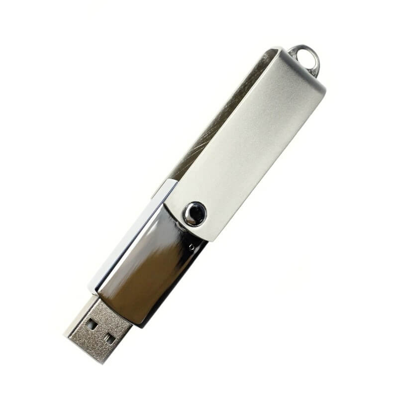 Luxusný kovový USB flash disk s otočným krytom konektora. Ideálne pre potlač, alebo laser loga. Možno pripojiť šnúrku, krúžok alebo karabínku.