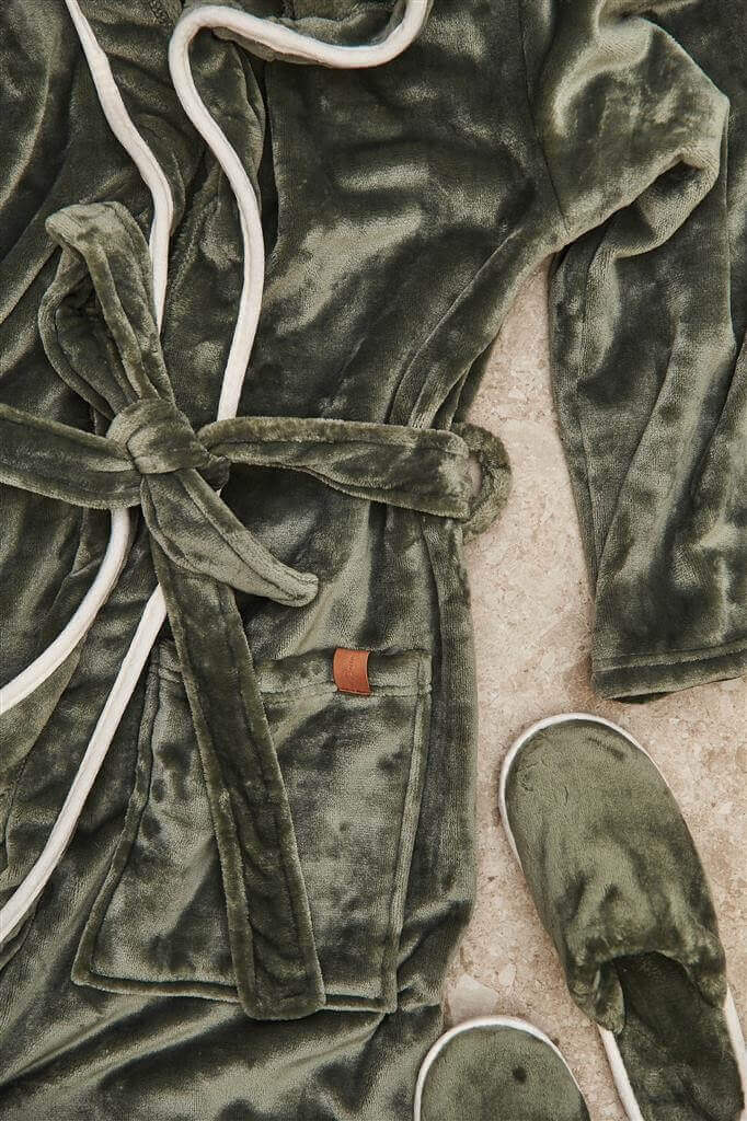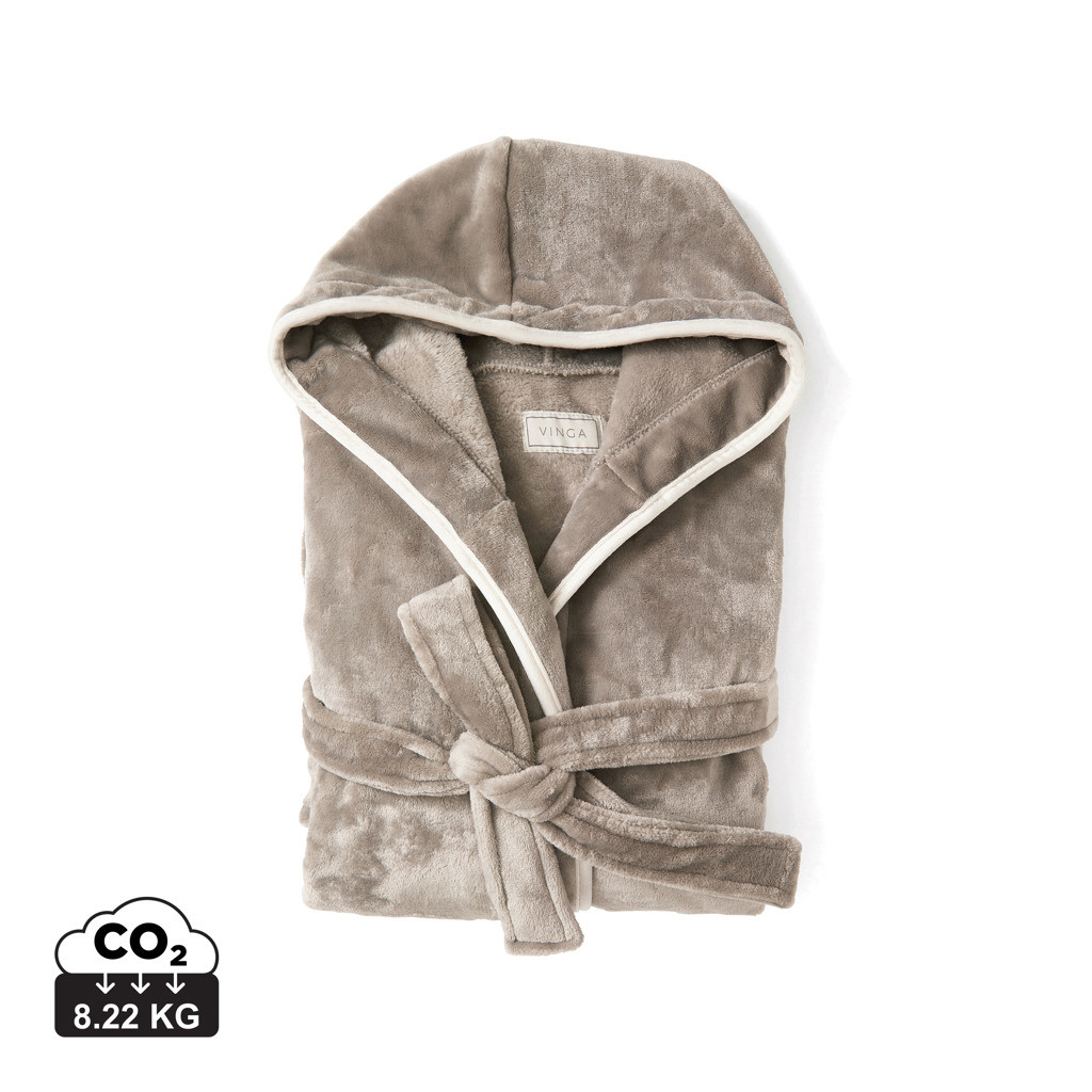 Mäkký a príjemný župan z luxusného plyšu s veľkou kapucňou a ozdobným lemovaním. Dve predné vrecká a opasok v páse. Župan je zo 70% vyrobený z recyklovaného materiálu z PET fliaš. Neradi prepravujeme vzduch, a preto sme sa rozhodli tento župan vákuovo zabaliť a znížiť našu uhlíkovú stopu. OEKO-TEX Standard 100 znamená, že materiál županu spĺňa niekoľko kritérií bezpečnosti výrobku.