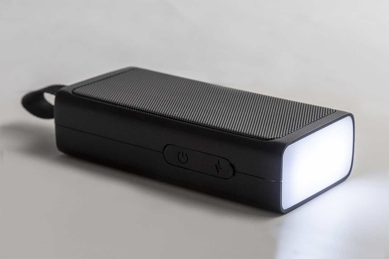 Bezdrôtový reproduktor z recyklovaného ABS s kovovou sieťovinou, LED svietidlom a magnetickou funkciou. So vstavanou dobíjacou batériou (500 mAh). Vrátane USB nabíjacieho kábla. New. Go Green. Bezdrôtové pripojenie: Áno. Vstavaná nabíjateľná batéria: Áno. Kapacita batérie: 500 mAh. USB kábel je súčasťou balenia: Áno. USB nabíjateľné: Áno. Úroveň jasu: 25 lumen