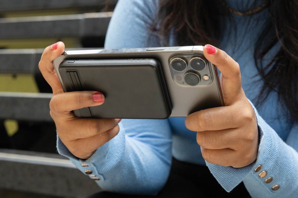 Vrecková powerbanka s kapacitou 5 000 mAh a 5W magnetickou bezdrôtovou nabíjačkou s puzdrom vyrobeným z recyklovaného plastu ABS s certifikáciou RCS a bambusu s certifikáciou FSC. RCS je štandard pre overenie recyklovaného obsahu výrobku v celom dodávateľskom reťazci. Powerbanka obsahuje lítium-polymérovú batériu triedy A s dlhou výdržou 5 000 mAh. S integrovaným stojanom na telefón. Vstup typu C 5V/2,4A; výstup typu C: 5V/2A.4A. Položka a príslušenstvo neobsahujú PVC. Vrátane recyklovaného nabíjacieho kábla TPE s certifikáciou RCS. Balené v zmiešanom obale FSC®.