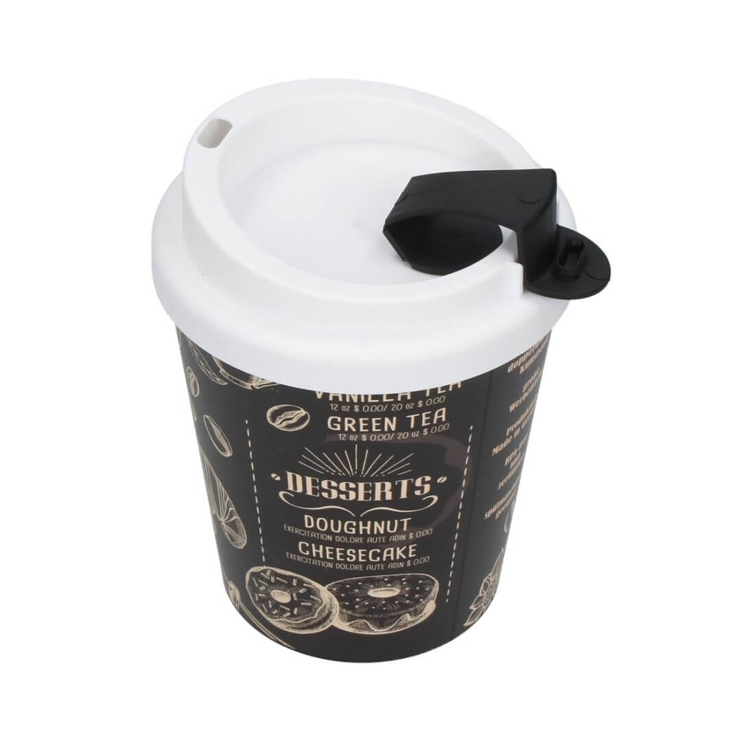 Kompaktný dvojstenný plastový To-Go kelímok s odnímateľným vekom a flexibilnou krytkou otvoru na pitie, ktorá sa dá po odklopení pohodlne uchytiť k okraju, aby neprekážala. Vhodný do všetkých bežných automobilových držiakov nápojov. Objem 0,25 l.