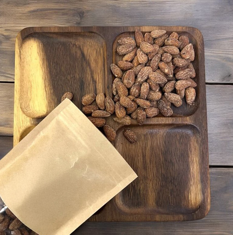 "Vychutnajte si bohatú chuť a vôňu našich údených mandlí - dokonalú kombináciu kvalitných mandlí a jemnej dymovej arómy." Pražené mandle v dymovej zmesi korenia, ktorá je ideálna na každú oslavu alebo večerné stretnutie. Ich chuť je jedinečná a keď ich ochutnáte, nebudete chcieť nič iné...