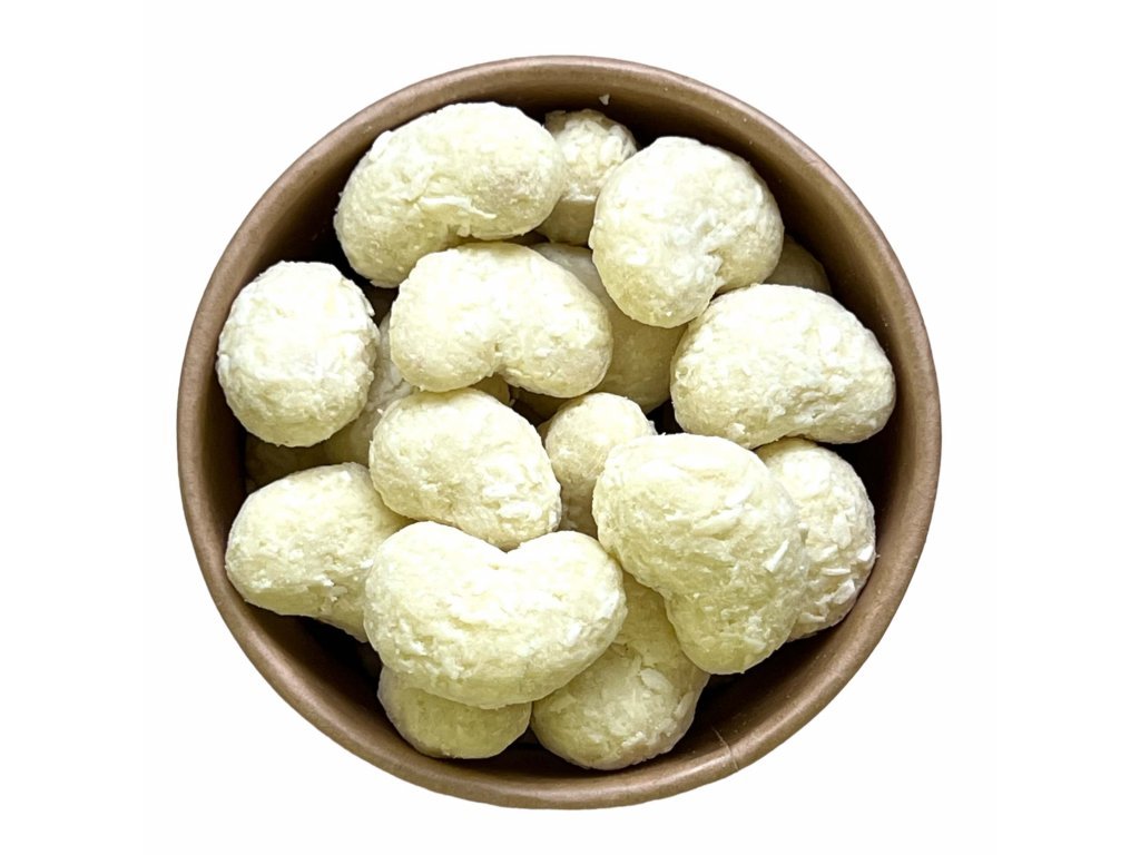 Vychutnajte si nezabudnuteľnú chuť našich kešu orieškov v jemnej bielej čokoláde s osviežujúcim kokosom. Dokonalá kombinácia, ktorá očarí vaše chuťové bunky.