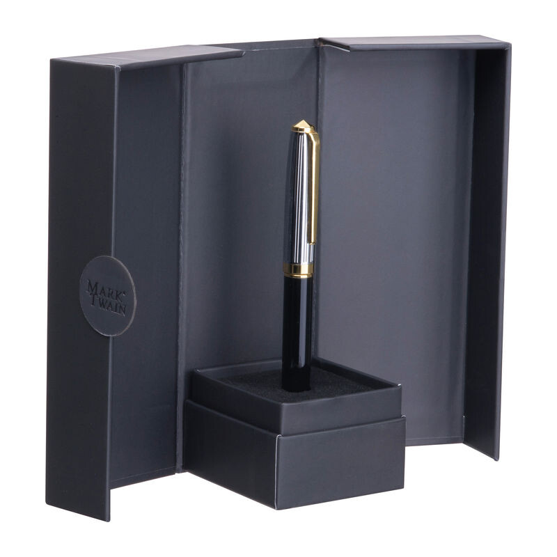 Mark Twain kovové guľôčkové pero v magnetickej krabičke s modrou náplňou, cca 800 m písacej dĺžky.