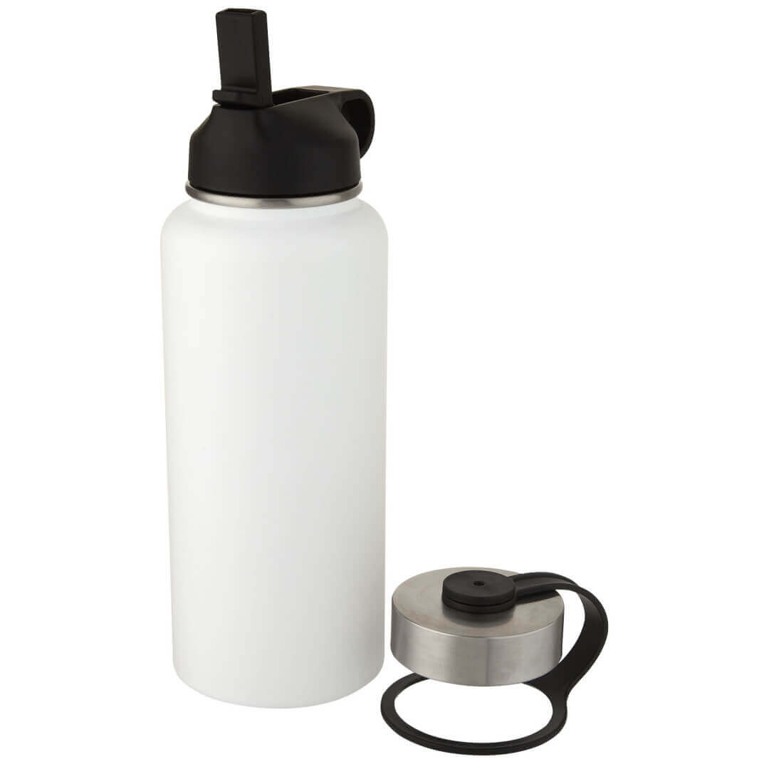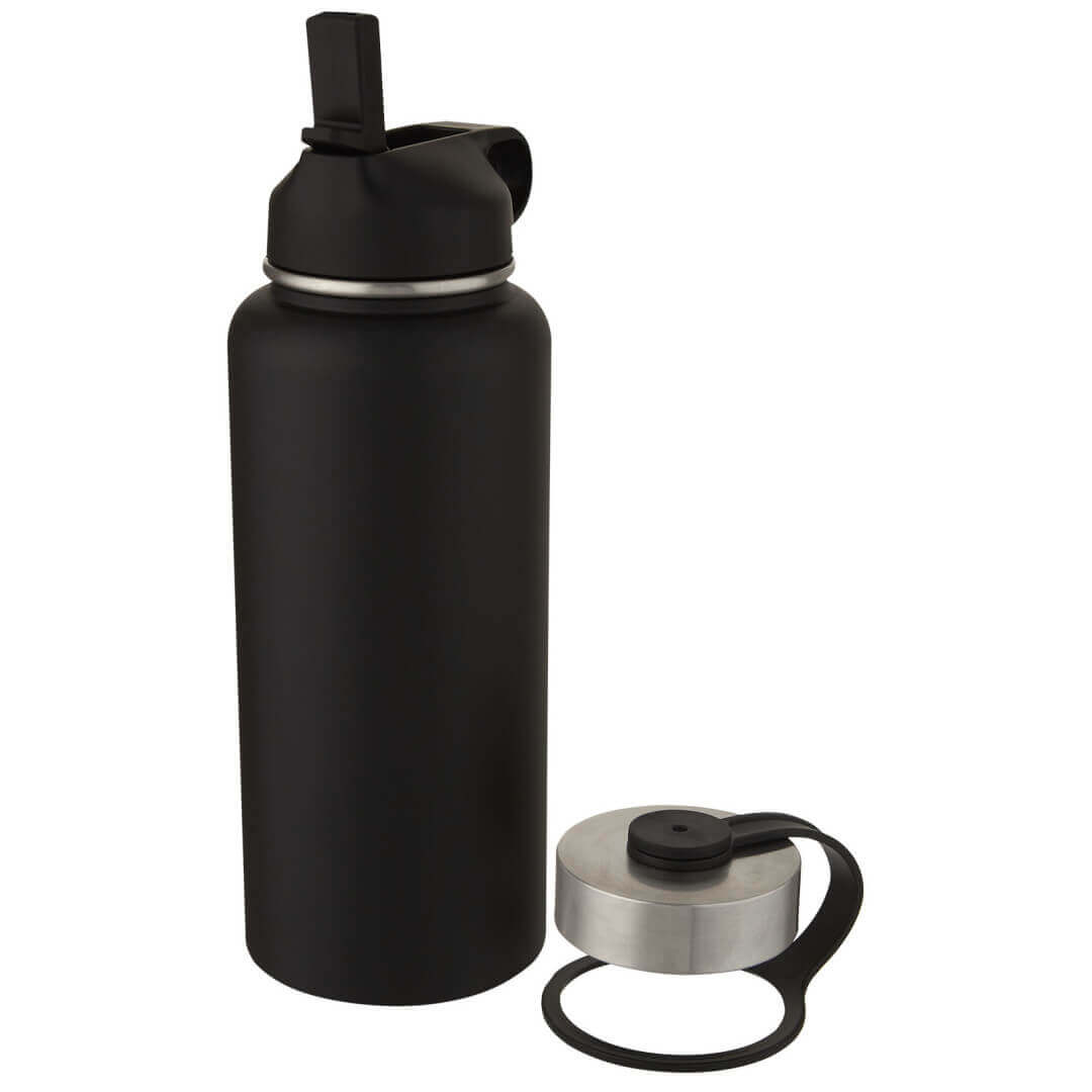 Športová dvojstenná fľaša z nerezovej ocele s vákuovou medenou izoláciou s 2 viečkami: jedno viečko so slamkou pre ľahké pitie a jedno nepriepustné skrutkovacie viečko s pútkom. Izolovaná konštrukcia z nerezovej ocele 18/8 zabraňuje kondenzácii na vonkajšej strane fľaše a vďaka trendy povrchovej úprave práškovej farby je extra odolná. Široké hrdlo pre ľahké plnenie, nalievanie a čistenie. Bez BPA, testované a schválené podľa nemeckej legislatívy o bezpečnosti potravín (LFGB). Testované a schválené na obsah ftalátov podľa predpisov REACH. Perfektný na kocky ľadu. Objem 1 litra. Neodporúča sa umývať v umývačke. Dodáva sa v darčekovej krabičke z recyklovanej lepenky.