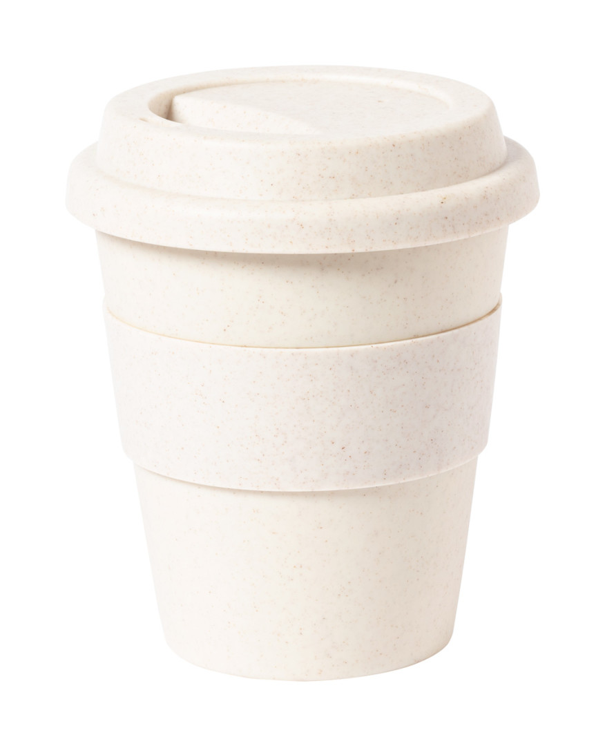Jednostenný cestovný hrnček z PP plastu s viečkom na pitie a gumovou rukoväťou, 350 ml.