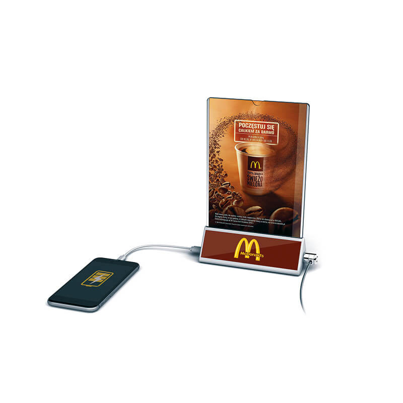 Menu power banky sú veľmi efektným reklamným nástrojom a zároveň doplnkovou službou pre prevádzkovateľov reštaurácií, kaviarní, obchodov či hotelov. Hodí sa tiež na konferencie a iné hromadné akcie. Reklamné tlačoviny alebo jedálny lístok je možné vymeniť kedykoľvek podľa potreby. Výkonné LED podsvietenie dokáže skvele akcentovať vaše reklamné oznámenie. Neoddeliteľnou súčasťou výrobku je zámok proti odcudzeniu. Nabitie Power Bank zaistíte cez USB konektor počítača (prípadne sieťový adaptér) a cez micro USB, popr. iný konektor následne nabijete Váš mobilný telefón alebo iné zariadenie. Plne nabitá Power Bank zaistí 2-5 nabitie mobilného telefónu, podľa kapacity jeho batérie. Nabíja iPhone, mobily, MP3, kamery a pod.