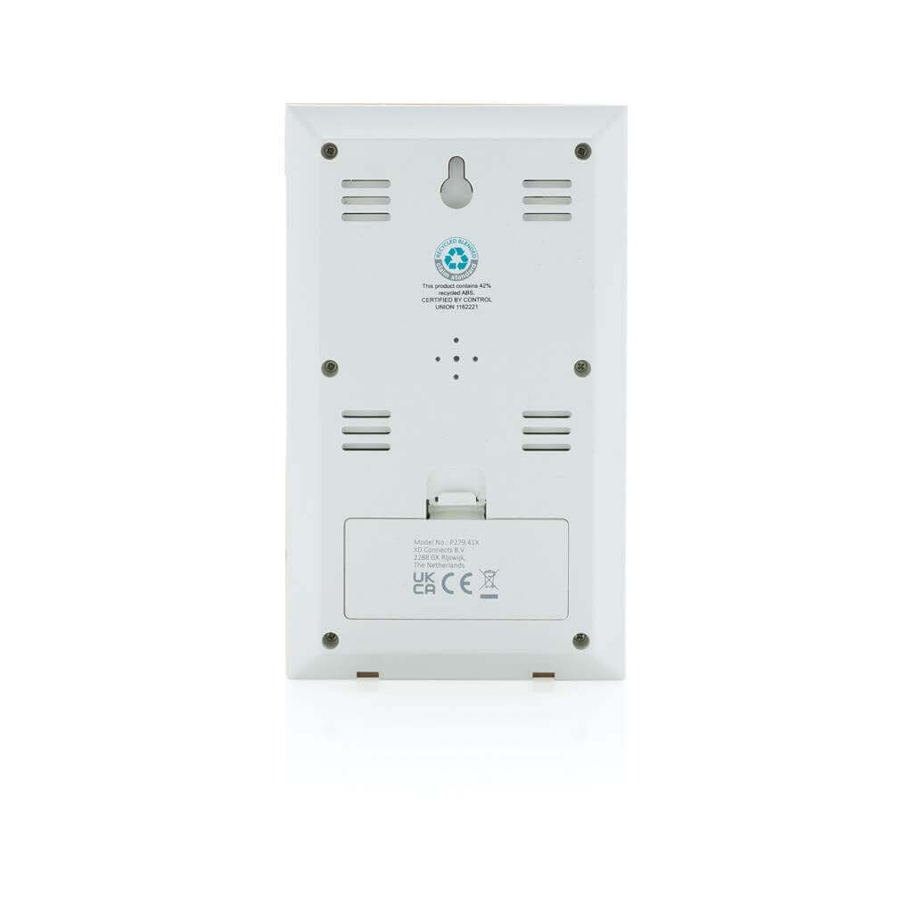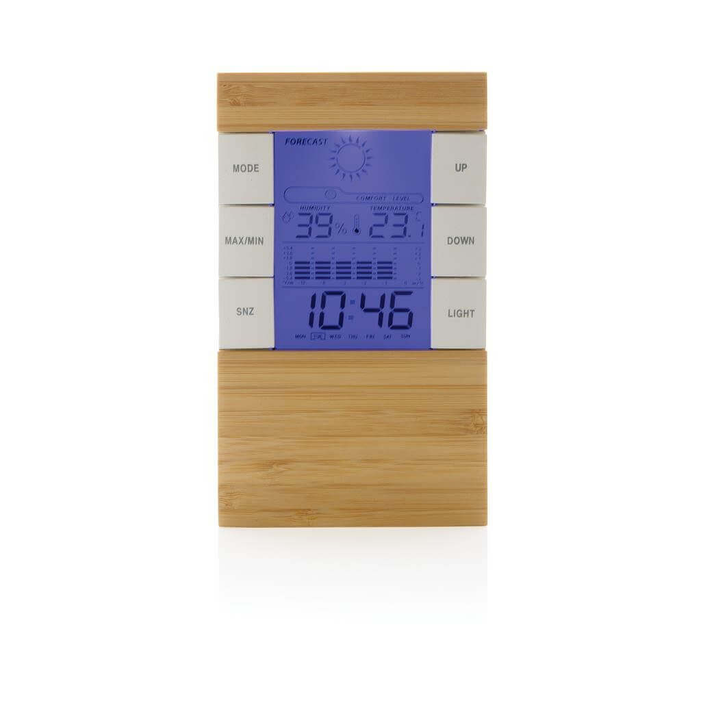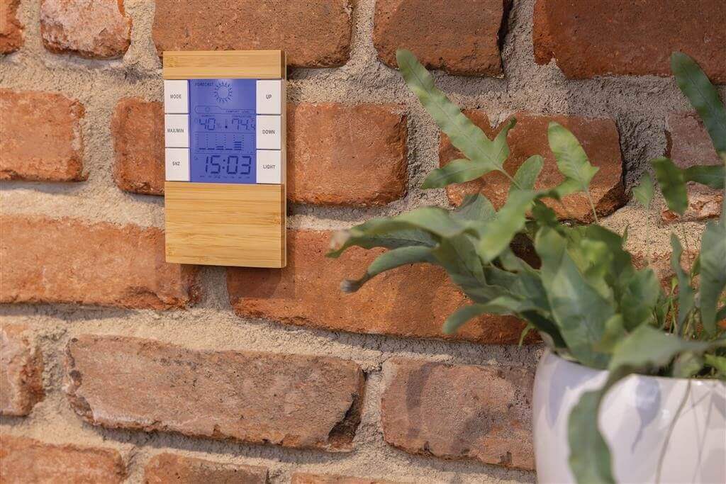 Meteostanica s LCD displejom a funkciami, ktoré zahŕňajú: teplota, vlhkosť, čas, deň, dátum. Vyrobené z RCS recyklovaného ABS plastu a FSC® bambusu. RCS (Recycled Claim Standard) je globálny štandard, ktorý umožňuje overiť použitie recyklovaného materiálu v produkte naprieč celým dodávateľským reťazcom. Celkový podiel recyklátu podľa váhy produktu: 42 %. Vrátane AAA batérií na okamžité použitie. Balené v FSC® darčekovej krabičke. 2 batérie typu AAA súčasťou balenia.