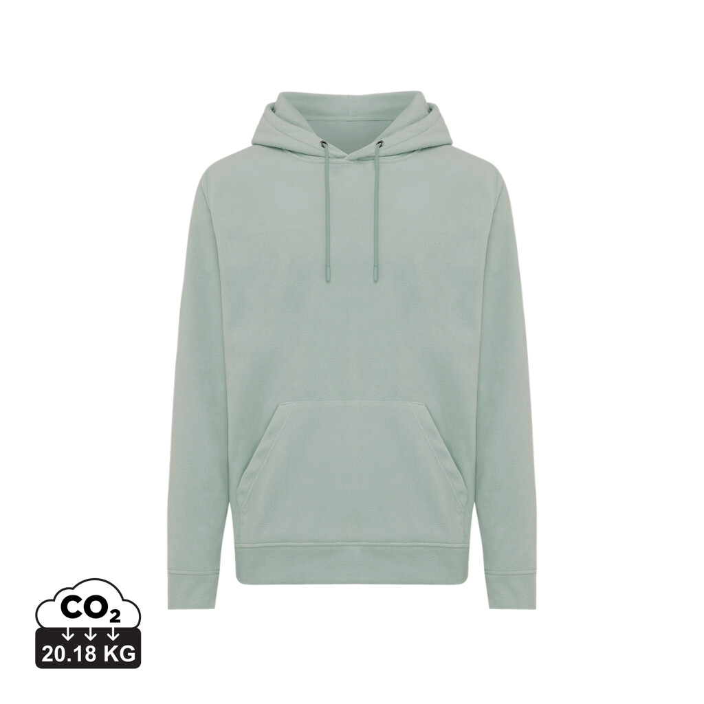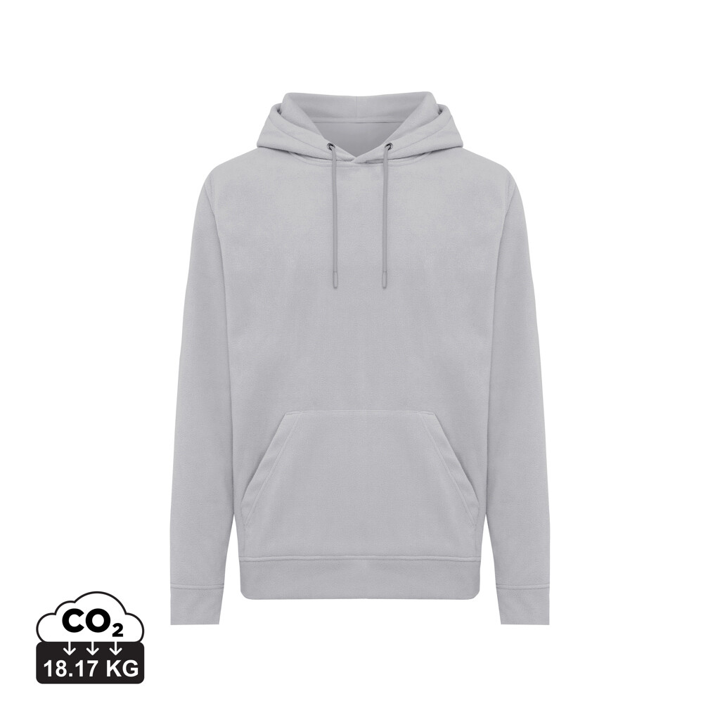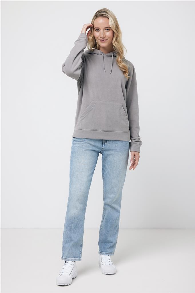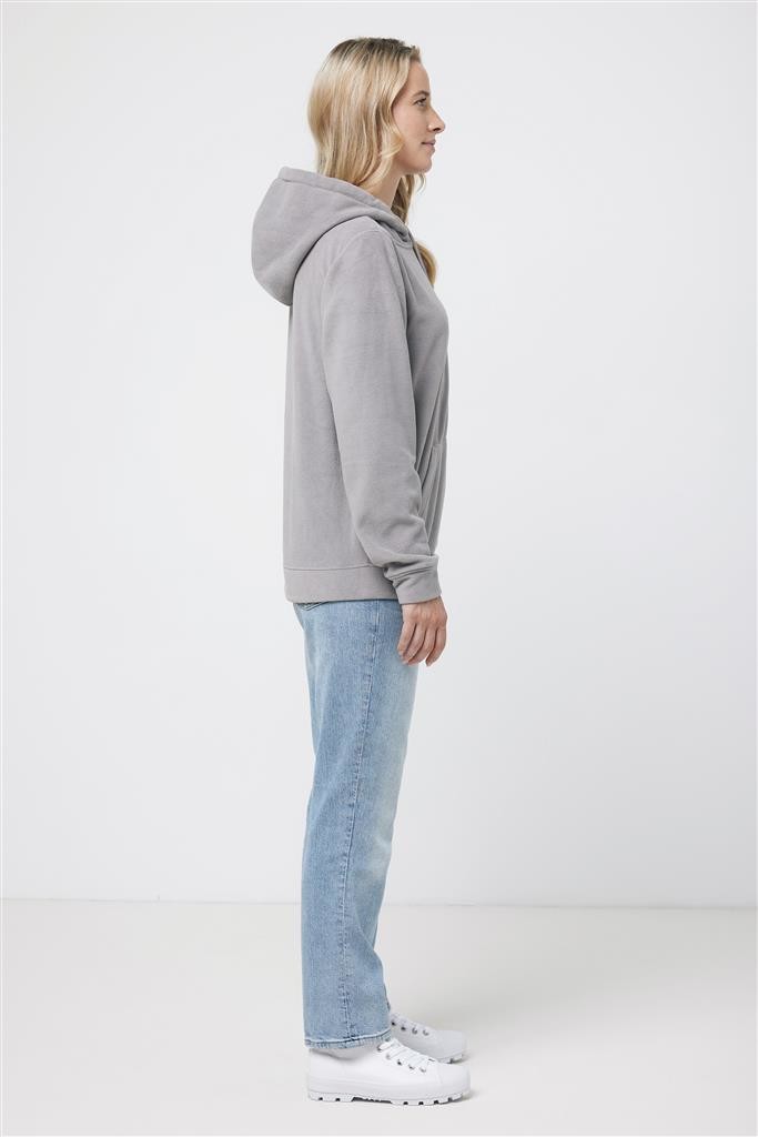 Unisexová mikroflísová mikina vyrobená zo 100% post-consumer recyklovaného polyesteru s gramážou 240 g/m². Praktické klokanie vrecko, dvojvrstvová kapucňa s tónovanou šnúrkou a kovovými očkami. Spodný lem a manžety rukávov sú vyrobené z vlastnej tkaniny pre extra mäkkosť. Tkaný polmesiac na vnútornej časti za krkom ponúka ideálny priestor na značenie logom. Obsah recyklovaných materiálov je garantovaný vďaka využitiu technológie AWARE™, ktorá kombinuje možnosť skenovania materiálu a technológiu blockchain. Každý produkt Iqoniq vlastní unikátny štítok s QR kódom, ktorý odkazuje na príslušný digitálny pas produktu. 2% z výťažku každého predaného kusu je darovaných na Water.org. Certifikované OEKO-TEX® STANDARD 100 2303045 Centexbel.