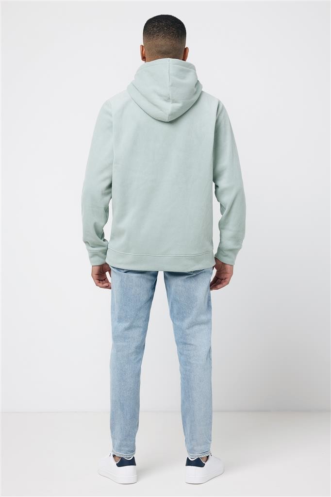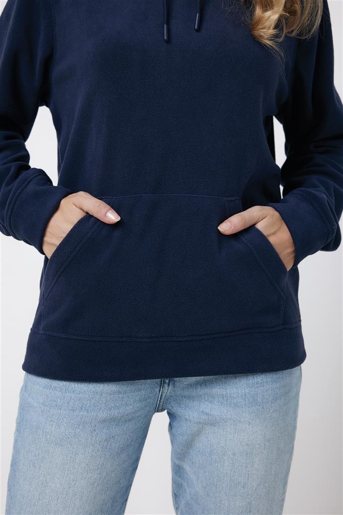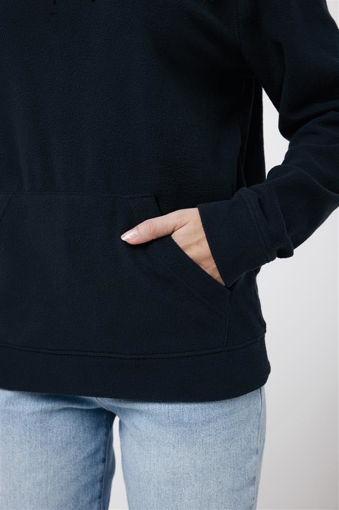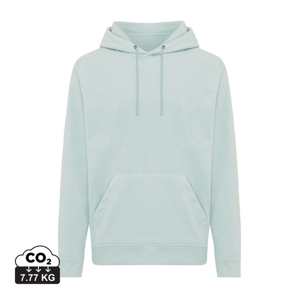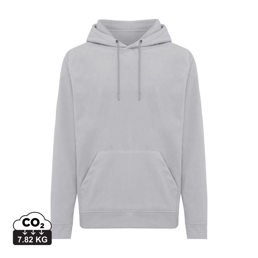 Unisexová mikroflísová mikina vyrobená zo 100% post-consumer recyklovaného polyesteru s gramážou 240 g/m². Praktické klokanie vrecko, dvojvrstvová kapucňa s tónovanou šnúrkou a kovovými očkami. Spodný lem a manžety rukávov sú vyrobené z vlastnej tkaniny pre extra mäkkosť. Tkaný polmesiac na vnútornej časti za krkom ponúka ideálny priestor na značenie logom. Obsah recyklovaných materiálov je garantovaný vďaka využitiu technológie AWARE™, ktorá kombinuje možnosť skenovania materiálu a technológiu blockchain. Každý produkt Iqoniq vlastní unikátny štítok s QR kódom, ktorý odkazuje na príslušný digitálny pas produktu. 2% z výťažku každého predaného kusu je darovaných na Water.org. Certifikované OEKO-TEX® STANDARD 100 2303045 Centexbel.